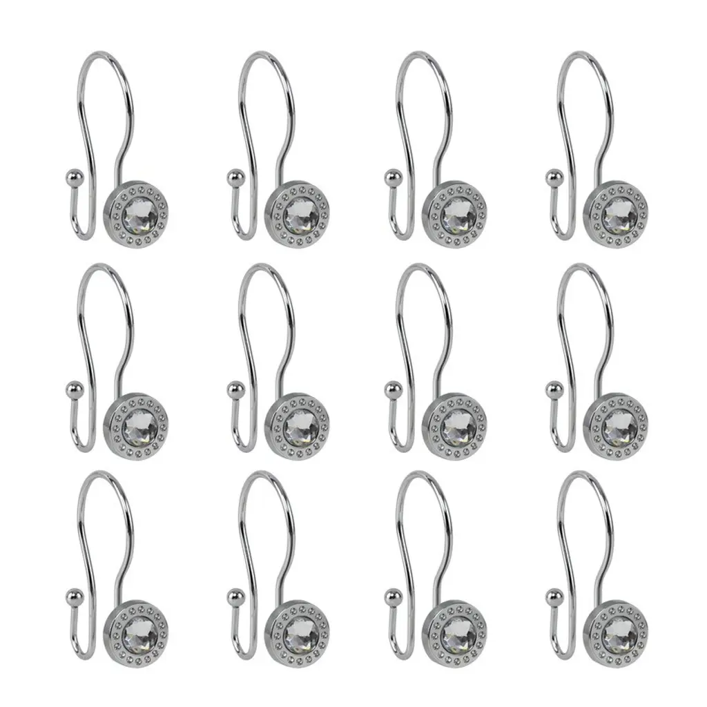 Utopia Alley Shower Hooks, Double Shower Curtain Hooks For Bathroom, Crystal Design, Set Of 12 - Polished Chrome