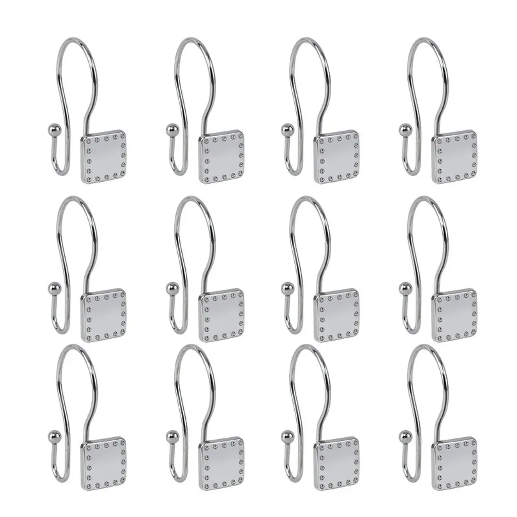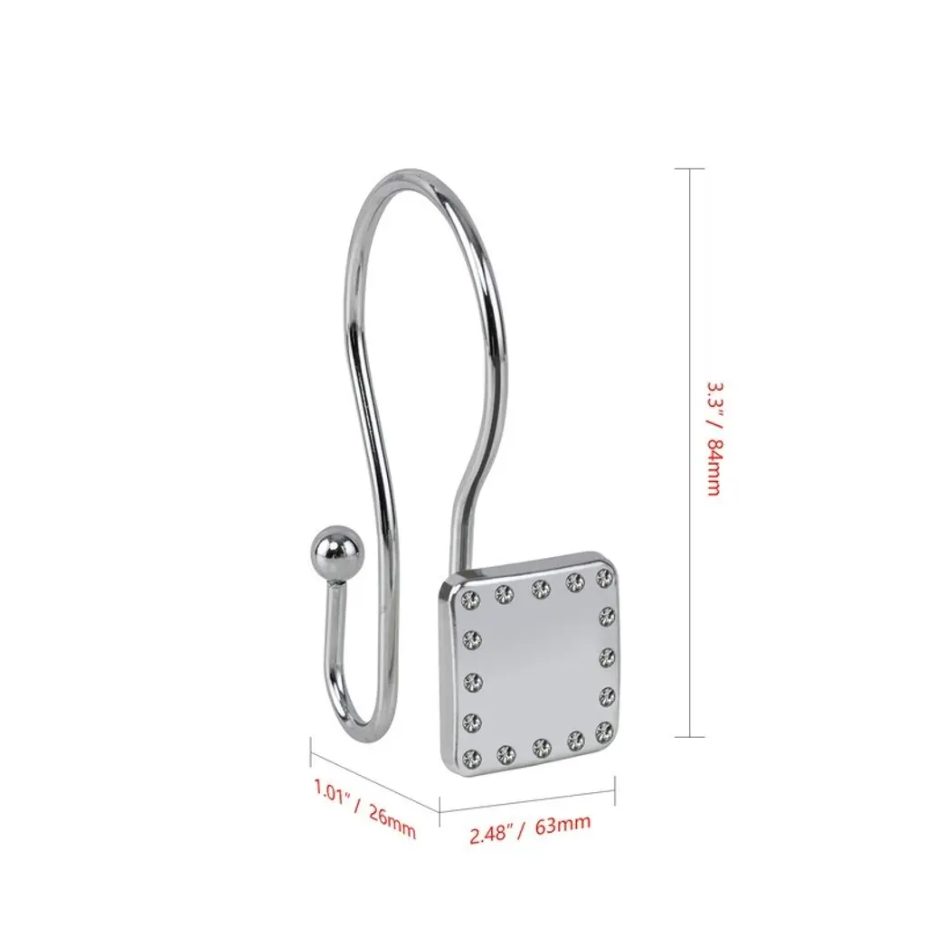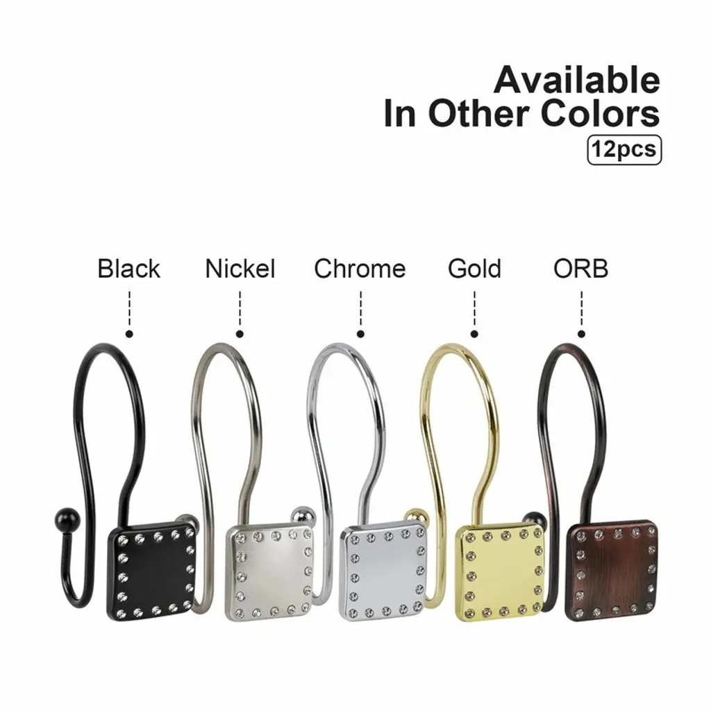 DOUBLE SHOWER CURTAIN RINGS: This double shower curtain ring has style and function in one. Use it to hang your favorite shower curtain while keeping the liner hidden. This double shower hook is designed to be installed next to each other, with one side holding up the liner and the other holding up the shower curtain. It's simple, sleek, and practical, making it an important part of your bathroom design. DURABLE & RUST-RESISTANT MATERIAL: These durable shower curtain hooks are made of rust-resistant, heavy-duty metal that won't easily bend or break. They are made from a zinc alloy and heavy-duty metal to keep them secure and modern. These rust-resistant hooks are sturdy, which means you don't need to replace them frequently anytime soon, and they can be used for many years. EASY TO INSTALL: Taking your shower curtain off is a bit of a squeeze, but putting it back on should be a breeze! Our sleek shower curtain hooks are easy to install and coordinate with many bath hardware finishes; simply put it on the shower rod. Our curtain hooks in a set of 12 are designed for easy removal, so you can swap them out when it's time for a new look or you need to replace your shower curtain or liner. AVAILABLE COLORS: Amp up your bathroom space and get organized with these shower curtain hooks. Beautifully suited for any bathroom, these crystal-designed hooks come in a wide range of colors; Polished Chrome, Oil Rubbed Bronze, Brushed Nickel, Matte Black, and Gold. ABOUT US: UTOPIA ALLEY is a woman-owned and operated business. Our goal is to provide our customers with furniture, home decor, essentials, and accessories made with durable products and exceptional craftsmanship. We believe in creating a stylish, comfortable space where you can relax, recharge, and feel inspired.