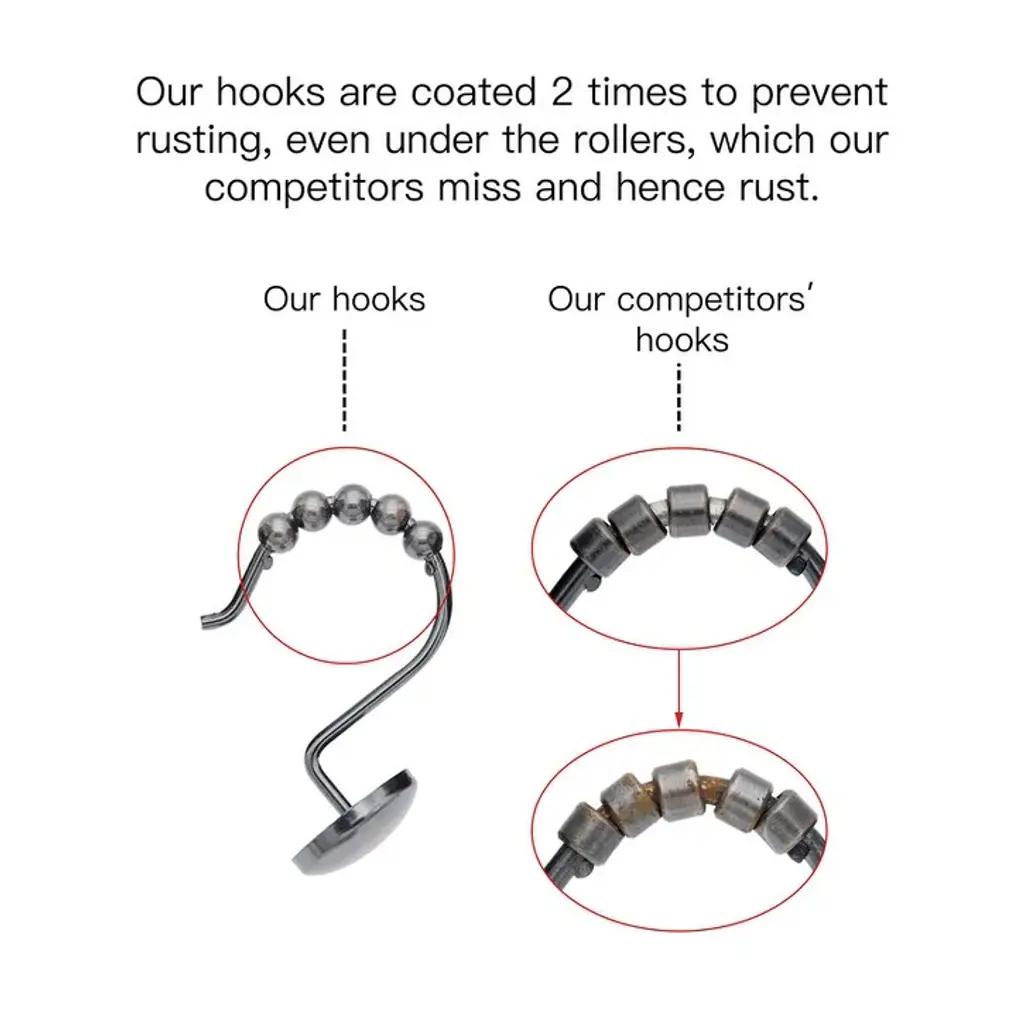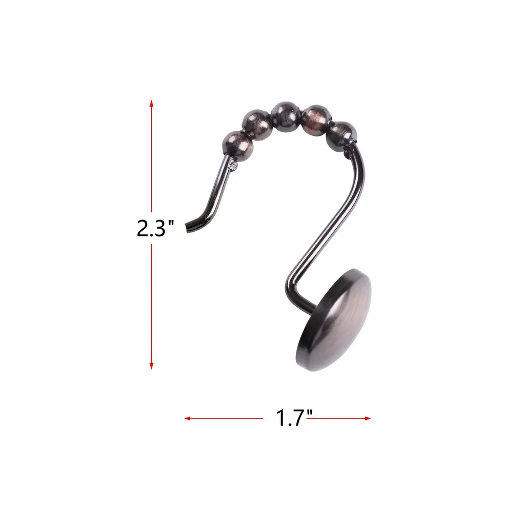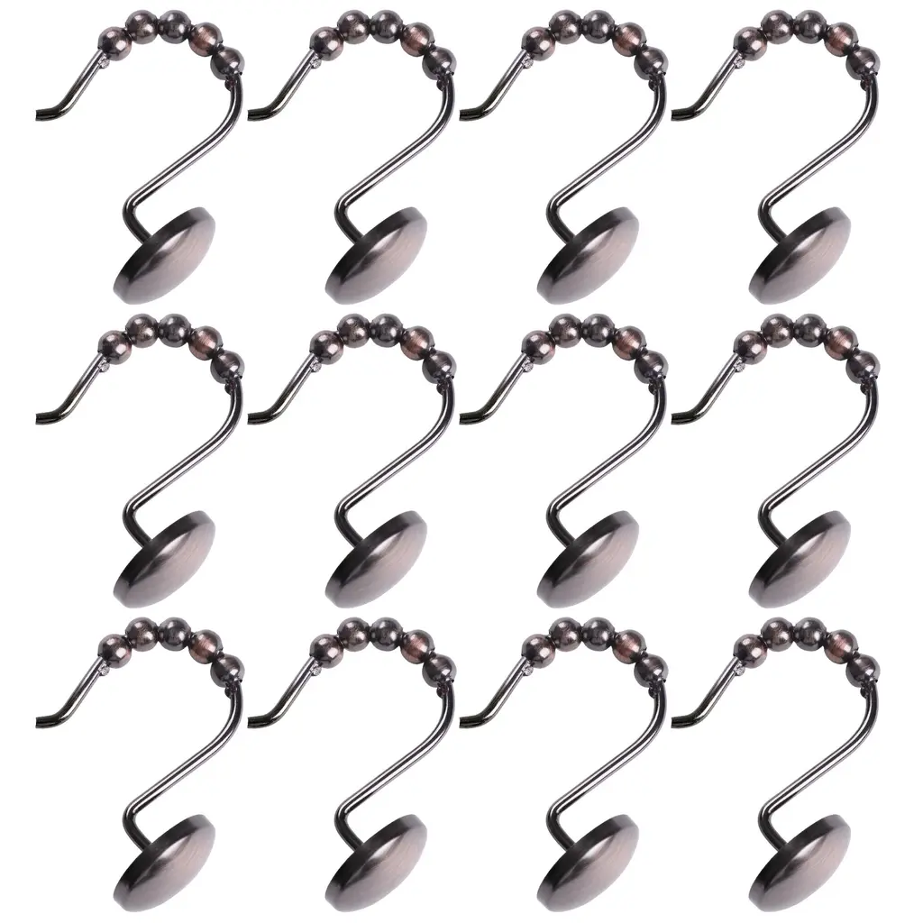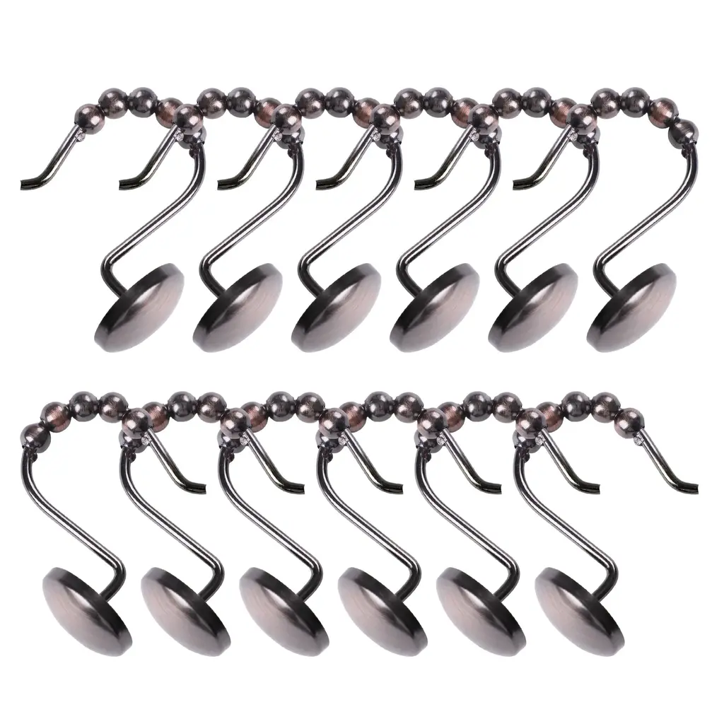 The ultimate finishing touch to any bathroom style, these shower curtain hooks are a classy and functional accessory to keep your curtain and liner in place. They come in wide range of colors: Polished Chrome, Oil Rubbed Bronze, Brushed Nickel, and matte black. It's simple, sleek, and practical, making it an important part of your bathroom design. They are made of rust-resistant, heavy-duty metal that won't easily bend or break. They are made of heavy-duty metal to keep them sturdy, secure, and modern. Our sleek shower curtain hooks are easy to install and coordinate with many bath hardware finishes. Easy to use, our shower curtain hooks in a set of 12 are designed for easy removal, so you can swap them out when it's time for a new look or you need to replace your shower curtain or liner. SHOWER CURTAIN HOOKS: Get both style and function with our shower curtain hooks. These bathroom curtain hooks feature a beautiful finish and a classy design that can add style and complement your existing decor. Our hooks for shower rods are designed to keep your shower curtain in place and are easy to install. Our shower curtain hook's charming design and functionality make it an essential bathroom accessory. DURABLE & RUST-RESISTANT MATERIAL: These shower curtain hooks are made of rust-resistant, heavy-duty metal that won't easily bend or break. They are made from a heavy-duty metal to keep them secure and modern. These rust-resistant hooks are sturdy, which means you don't need to replace them frequently anytime soon, and they can be used for many years. EASY TO INSTALL: Taking your shower curtain off is a bit of a squeeze, but putting it back on should be a breeze! Our sleek shower curtain hooks are easy to install and coordinate with many bath hardware finishes; simply put it on the shower rod. Our curtain hooks in a set of 12 are designed for easy removal, so you can swap them out when it's time for a new look or you need to replace your shower curtain or liner. AVAILABLE COLORS: Amp up your bathroom space and get organized with these shower curtain hooks. Beautifully suited for any bathroom, these rollers designed hooks come in a wide range of colors; Polished Chrome, Oil Rubbed Bronze, Brushed Nickel, and Matte Black. ABOUT US: UTOPIA ALLEY is a woman-owned and operated business. Our goal is to provide our customers with furniture, home decor, essentials, and accessories made with durable products and exceptional craftsmanship. We believe in creating a stylish, comfortable space where you can relax, recharge, and feel inspired.