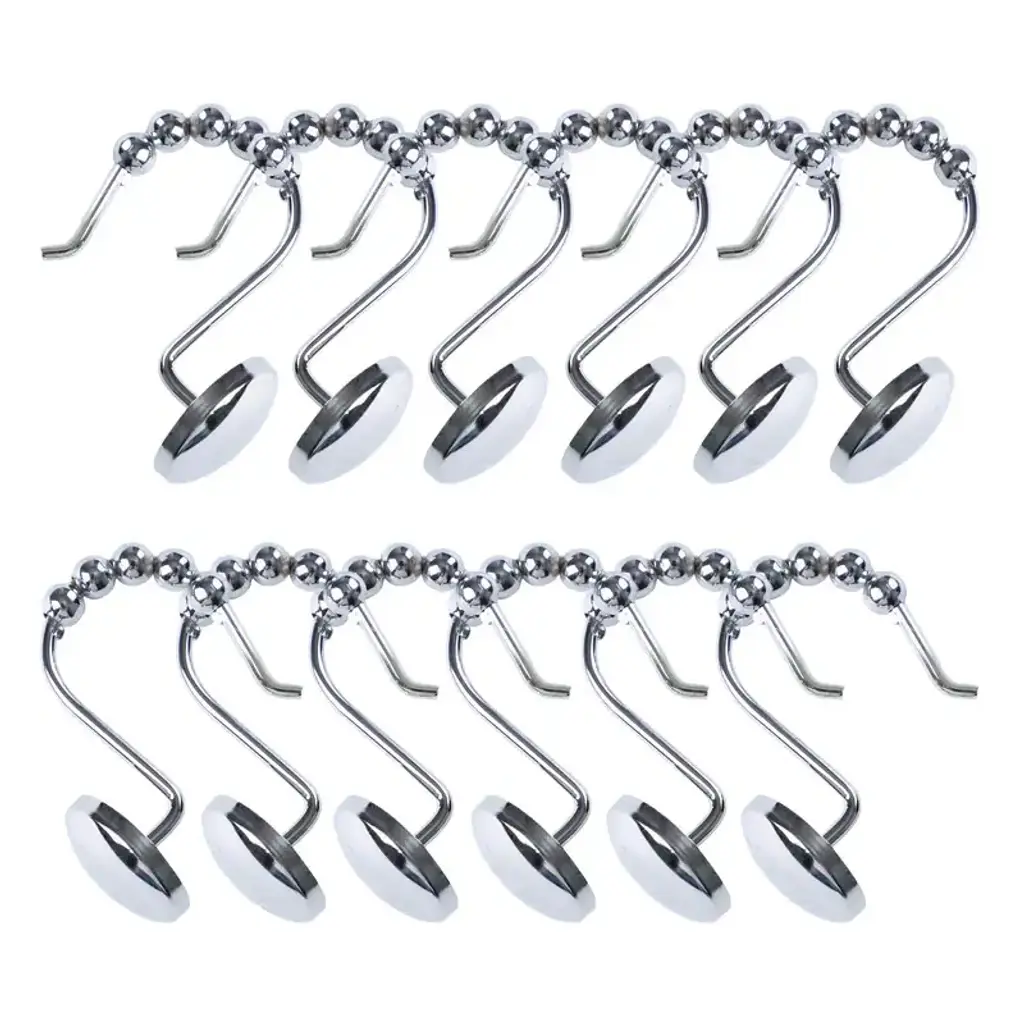 The ultimate finishing touch to any bathroom style, these shower curtain hooks are a classy and functional accessory to keep your curtain and liner in place. They come in wide range of colors: Polished Chrome, Oil Rubbed Bronze, Brushed Nickel, and matte black. It's simple, sleek, and practical, making it an important part of your bathroom design. They are made of rust-resistant, heavy-duty metal that won't easily bend or break. They are made of heavy-duty metal to keep them sturdy, secure, and modern. Our sleek shower curtain hooks are easy to install and coordinate with many bath hardware finishes. Easy to use, our shower curtain hooks in a set of 12 are designed for easy removal, so you can swap them out when it's time for a new look or you need to replace your shower curtain or liner. SHOWER CURTAIN HOOKS: Get both style and function with our shower curtain hooks. These bathroom curtain hooks feature a beautiful finish and a classy design that can add style and complement your existing decor. Our hooks for shower rods are designed to keep your shower curtain in place and are easy to install. Our shower curtain hook's charming design and functionality make it an essential bathroom accessory. DURABLE & RUST-RESISTANT MATERIAL: These shower curtain hooks are made of rust-resistant, heavy-duty metal that won't easily bend or break. They are made from a heavy-duty metal to keep them secure and modern. These rust-resistant hooks are sturdy, which means you don't need to replace them frequently anytime soon, and they can be used for many years. EASY TO INSTALL: Taking your shower curtain off is a bit of a squeeze, but putting it back on should be a breeze! Our sleek shower curtain hooks are easy to install and coordinate with many bath hardware finishes; simply put it on the shower rod. Our curtain hooks in a set of 12 are designed for easy removal, so you can swap them out when it's time for a new look or you need to replace your shower curtain or liner. AVAILABLE COLORS: Amp up your bathroom space and get organized with these shower curtain hooks. Beautifully suited for any bathroom, these rollers designed hooks come in a wide range of colors; Polished Chrome, Oil Rubbed Bronze, Brushed Nickel, and Matte Black. ABOUT US: UTOPIA ALLEY is a woman-owned and operated business. Our goal is to provide our customers with furniture, home decor, essentials, and accessories made with durable products and exceptional craftsmanship. We believe in creating a stylish, comfortable space where you can relax, recharge, and feel inspired.