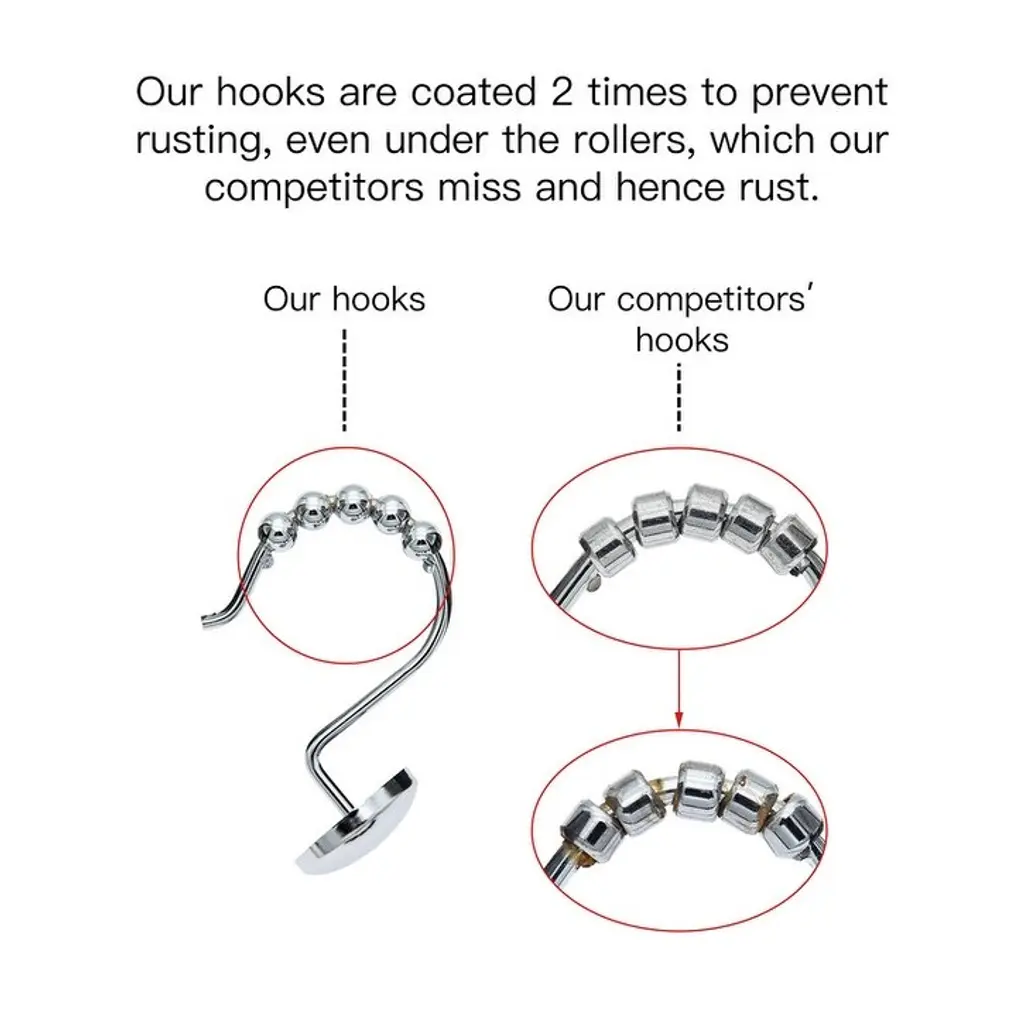Utopia Alley Shower Hooks - Rust Resistant Roller Shower Curtain Hooks For Shower Curtain - Set Of 12 - Polished Chrome