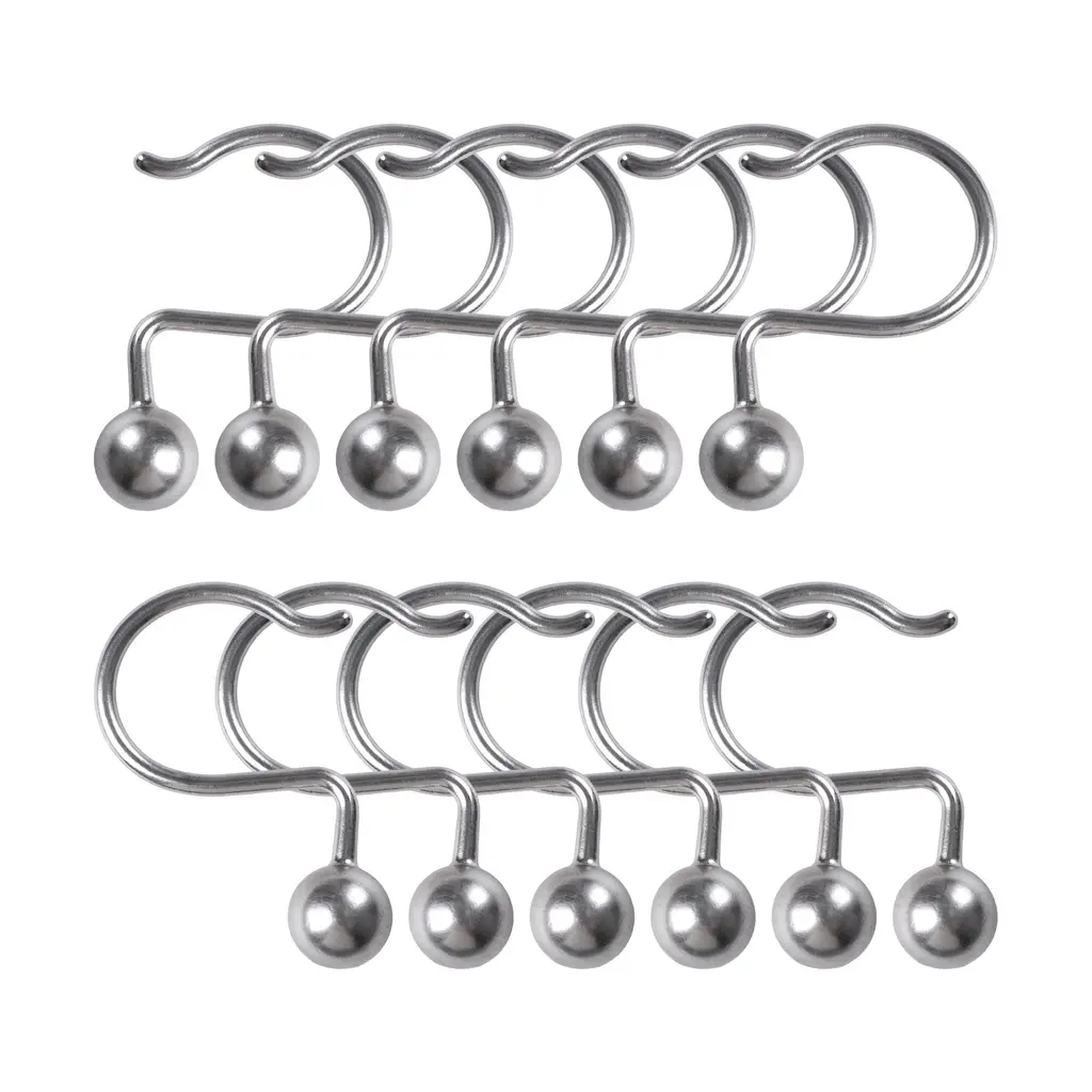 Utopia Alley Shower Hooks - Rust Resistant Shower Curtain Hooks For Shower Curtain Or Liner - Set Of 12 - Brushed Nickel