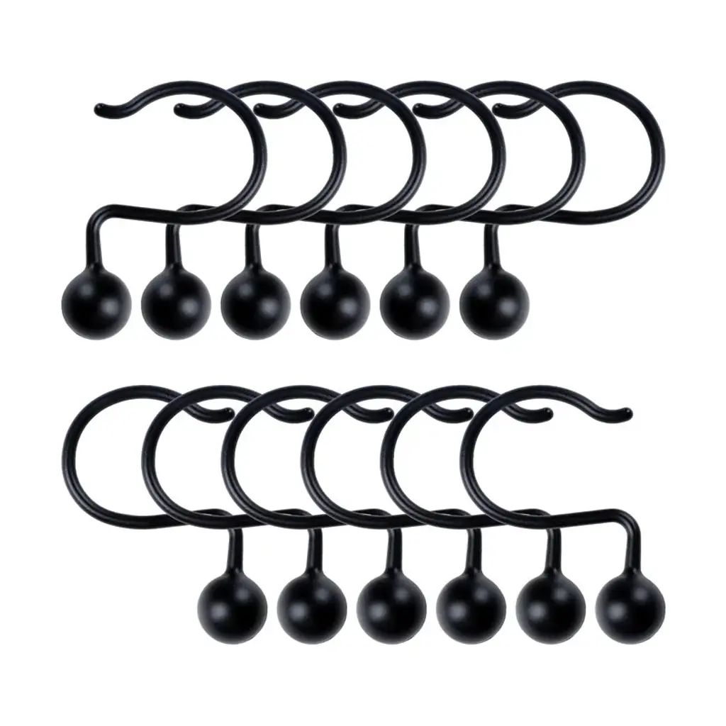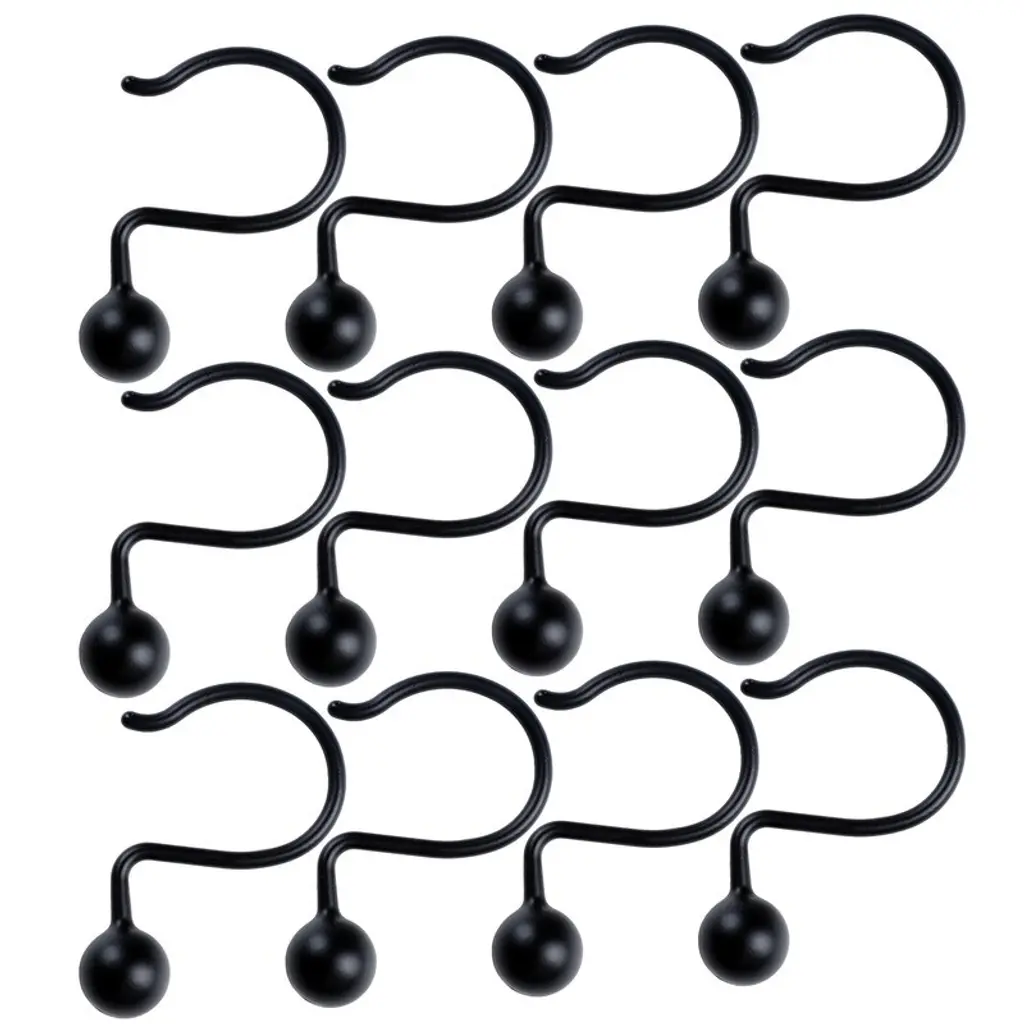 Utopia Alley Shower Hooks - Rust Resistant Shower Curtain Hooks For Shower Curtain Or Liner - Set Of 12 - Matt Black