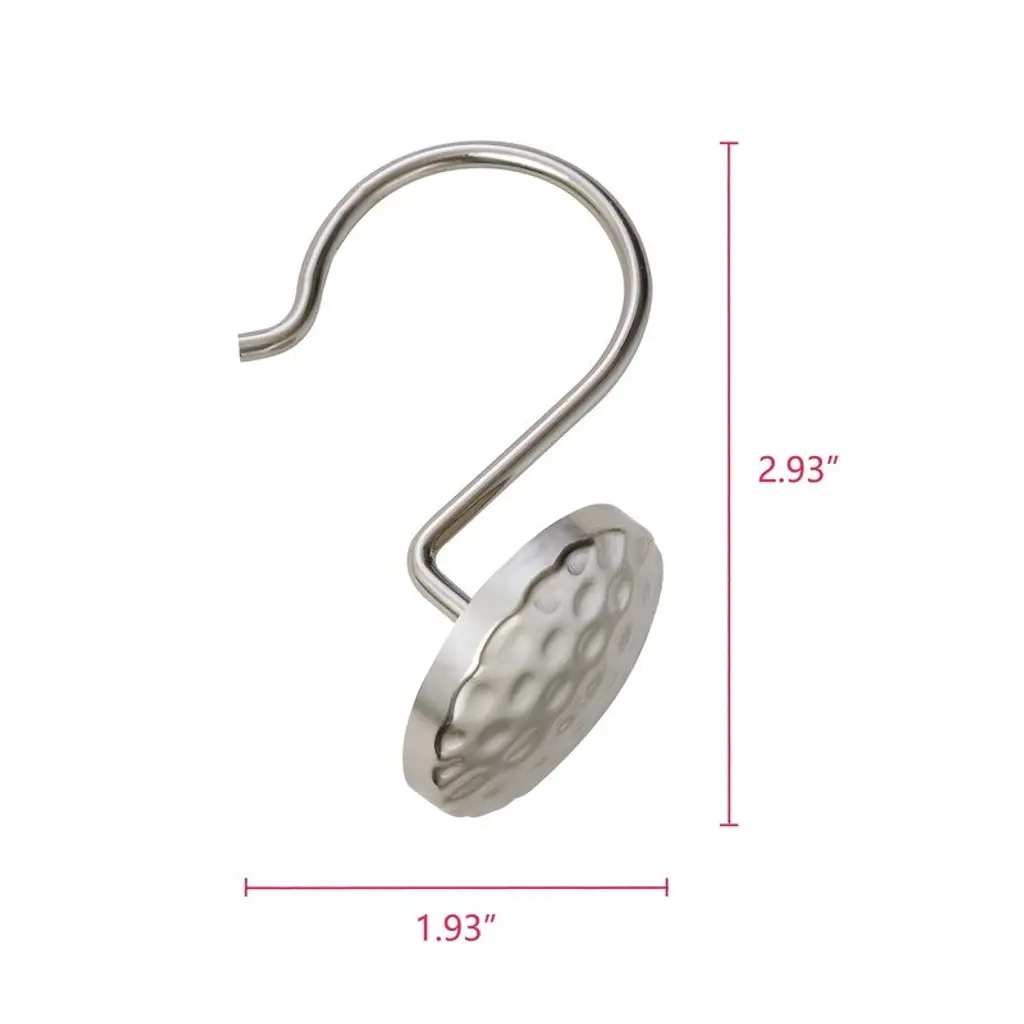 SHOWER CURTAIN HOOKS: Get both style and function with our shower curtain hooks. These bathroom curtain hooks feature a beautiful finish and a classy design that can add style and complement your existing decor. Our hooks for shower rods are designed to keep your shower curtain in place and are easy to install. Our shower curtain hook's charming design and functionality make it an essential bathroom accessory. DURABLE & RUST-RESISTANT MATERIAL: These shower curtain hooks are made of rust-resistant, heavy-duty metal that won't easily bend or break. They are made from a heavy-duty metal to keep them secure and modern. These rust-resistant hooks are sturdy, which means you don't need to replace them frequently anytime soon, and they can be used for many years.EASY TO INSTALL: Taking your shower curtain off is a bit of a squeeze, but putting it back on should be a breeze! Our sleek shower curtain hooks are easy to install and coordinate with many bath hardware finishes; simply put it on the shower rod. Our curtain hooks in a set of 12 are designed for easy removal, so you can swap them out when it's time for a new look or you need to replace your shower curtain or liner.AVAILABLE COLORS: Amp up your bathroom space and get organized with these shower curtain hooks. Beautifully suited for any bathroom, these roller designed hooks come in a wide range of colors; Polished Chrome, Oil Rubbed Bronze, Brushed Nickel, Matte Black, and Gold. ABOUT US: UTOPIA ALLEY is a woman-owned and operated business. Our goal is to provide our customers with furniture, home decor, essentials, and accessories made with durable products and exceptional craftsmanship. We believe in creating a stylish, comfortable space where you can relax, recharge, and feel inspired.