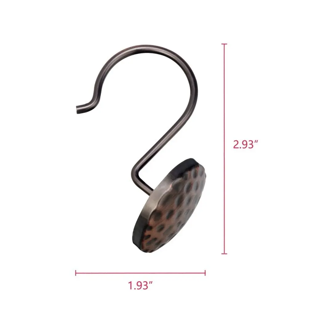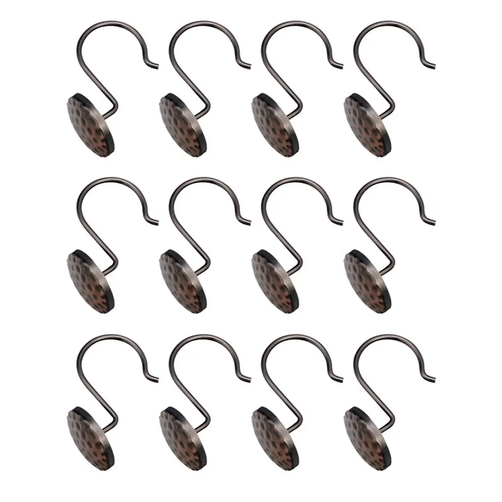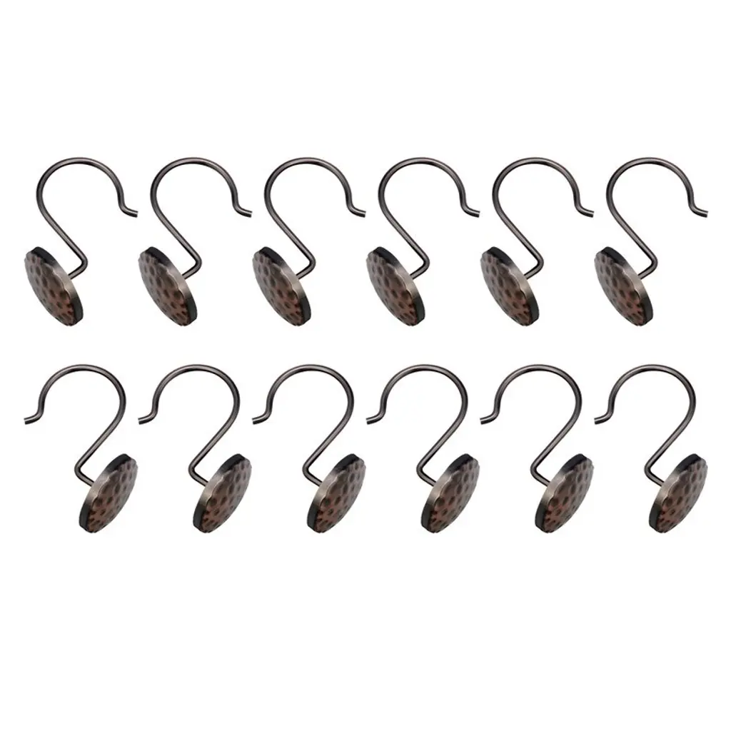 SHOWER CURTAIN HOOKS: Get both style and function with our shower curtain hooks. These bathroom curtain hooks feature a beautiful finish and a classy design that can add style and complement your existing decor. Our hooks for shower rods are designed to keep your shower curtain in place and are easy to install. Our shower curtain hook's charming design and functionality make it an essential bathroom accessory. DURABLE & RUST-RESISTANT MATERIAL: These shower curtain hooks are made of rust-resistant, heavy-duty metal that won't easily bend or break. They are made from a heavy-duty metal to keep them secure and modern. These rust-resistant hooks are sturdy, which means you don't need to replace them frequently anytime soon, and they can be used for many years.EASY TO INSTALL: Taking your shower curtain off is a bit of a squeeze, but putting it back on should be a breeze! Our sleek shower curtain hooks are easy to install and coordinate with many bath hardware finishes; simply put it on the shower rod. Our curtain hooks in a set of 12 are designed for easy removal, so you can swap them out when it's time for a new look or you need to replace your shower curtain or liner.AVAILABLE COLORS: Amp up your bathroom space and get organized with these shower curtain hooks. Beautifully suited for any bathroom, these roller designed hooks come in a wide range of colors; Polished Chrome, Oil Rubbed Bronze, Brushed Nickel, Matte Black, and Gold. ABOUT US: UTOPIA ALLEY is a woman-owned and operated business. Our goal is to provide our customers with furniture, home decor, essentials, and accessories made with durable products and exceptional craftsmanship. We believe in creating a stylish, comfortable space where you can relax, recharge, and feel inspired.