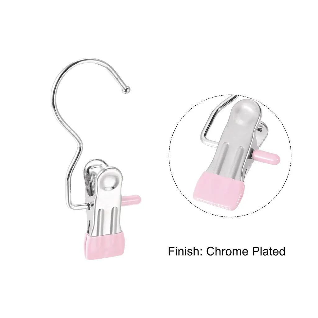 Keep your wardrobe and home tidy with the Uxcell Laundry Clips with Hook Metal Boot Hangers. Made of durable metal with a chrome-plated finish, these hangers feature a bright surface that is resistant to rust. The non-slip design includes smooth plastic protective covers on the ends, providing a better grip while also protecting your clothes, shoes, or other items. These hangers are perfect for storing or drying boots, clothes, hats, scarves, socks, sheets, towels, dish towels, and more. Say goodbye to messy shoes and clothes with these convenient and versatile hangers.Features: