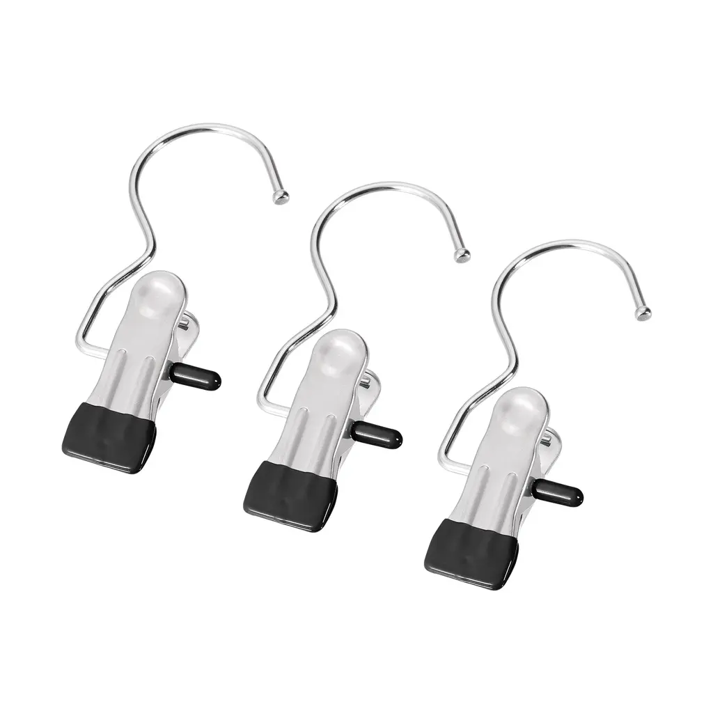 Uxcell Laundry Clips With Hook Metal Boot Hangers Chrome Plated - Black