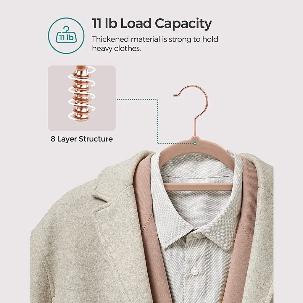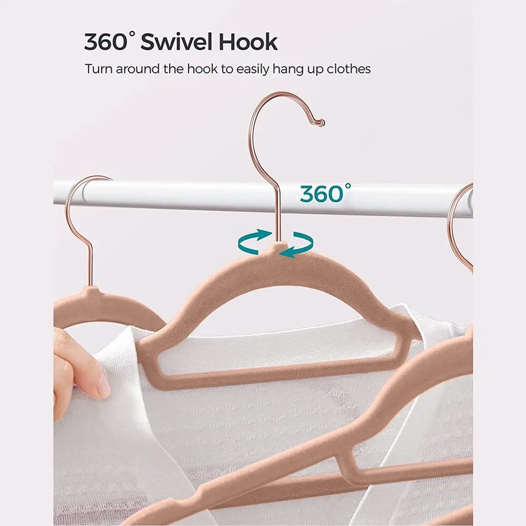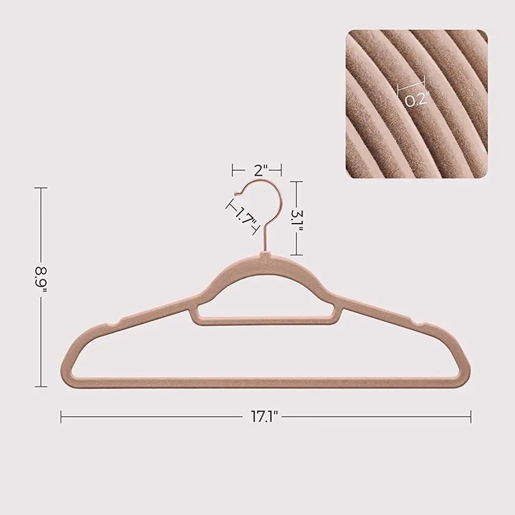 Velvet Non-Slip Clothes Hangers Set Of 50 With Rose Gold Swivel Hook - 17.1”w X 8.9” H - Caramel Brown