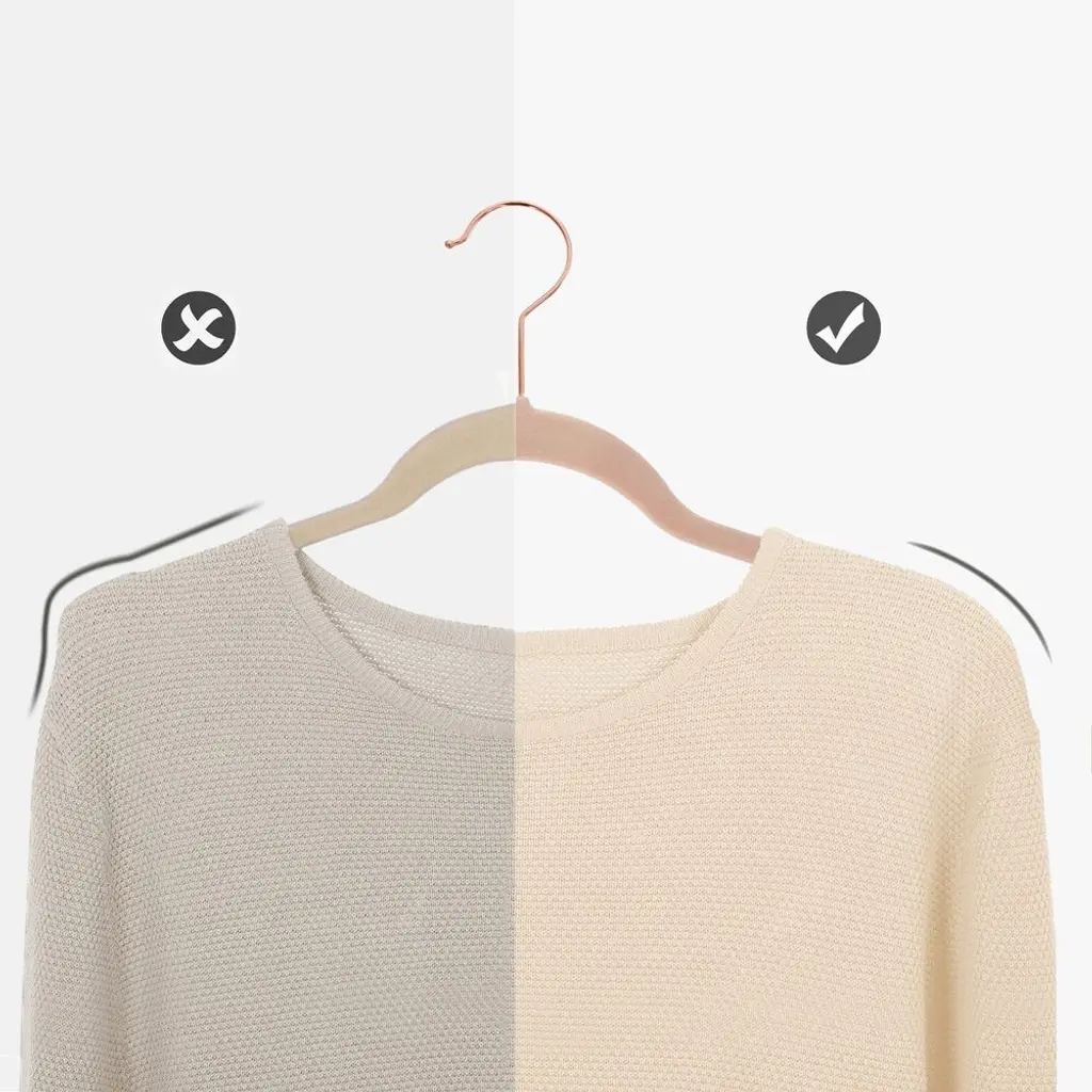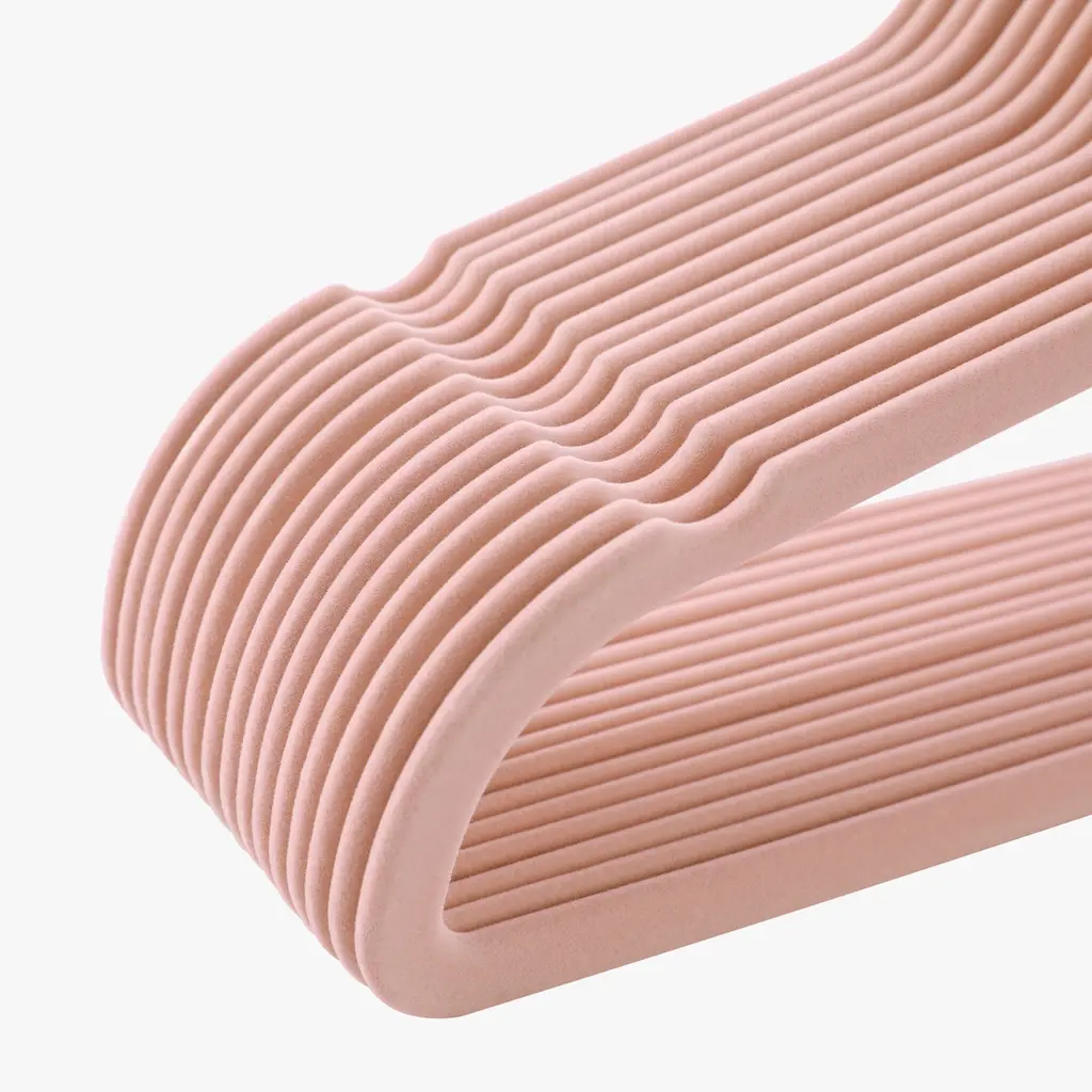 Velvet Non-Slip Hangers With Rose Gold Swivel Metal Hook And Shoulder Notches - 30-Pieces - Pink