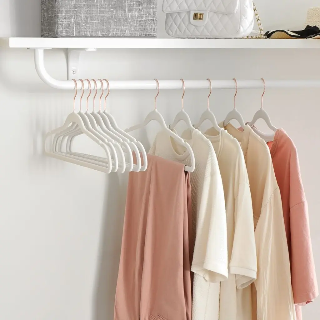 Velvet Non-Slip Hangers With Rose Gold Swivel Metal Hook And Shoulder Notches - 50-Pieces - White