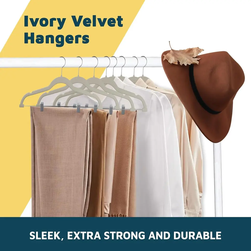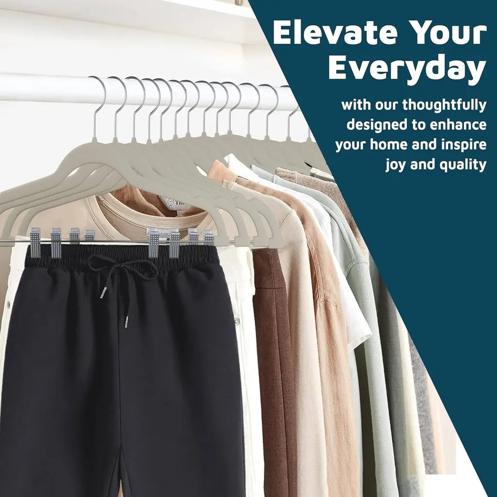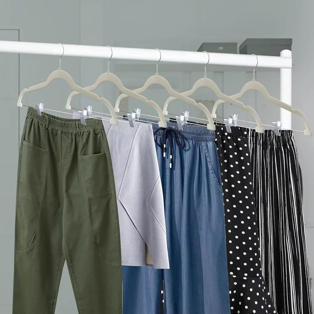 Transform your wardrobe organization with the Lifemaster Velvet Pants Hangers, a perfect blend of style, functionality, and durability. Designed to accommodate a variety of garments, these hangers are ideal for trousers, skirts, dresses, and more, helping you maintain a neat and accessible closet. The two adjustable clips are thoughtfully designed to fit garments of various widths, accommodating up to 15.6 inches. Equipped with plastic tips, the clips provide a secure grip while protecting your clothes from unsightly clip marks, ensuring your favorite pieces remain in pristine condition. Additionally, the hangers feature a 360-degree swivel hook, allowing you to access your clothing effortlessly from any angle. Whether you're selecting an outfit for the day or organizing freshly laundered items, these hangers make the process smooth and hassle-free. For added versatility, the hangers are designed with smart shoulder notches that securely hold garments with thin straps, such as dresses, skirts, and bras, preventing them from slipping off. The slim 0.2-inch design, crafted from recycled ABS material and finished with a soft velvet coating, ensures that your clothes stay in place, retain their natural shape, and remain wrinkle-free. Despite their slim profile, these hangers are sturdy enough to hold up to 10 pounds, making them both practical and elegant. Available in a sleek Ivory color, the Lifemaster Velvet Pants Hangers come in a convenient pack of 10 with each hanger measuring 17.13’’ x 8.86’’. Their modern design not only enhances the appearance of your closet but also maximizes space, making them a must-have for any wardrobe.