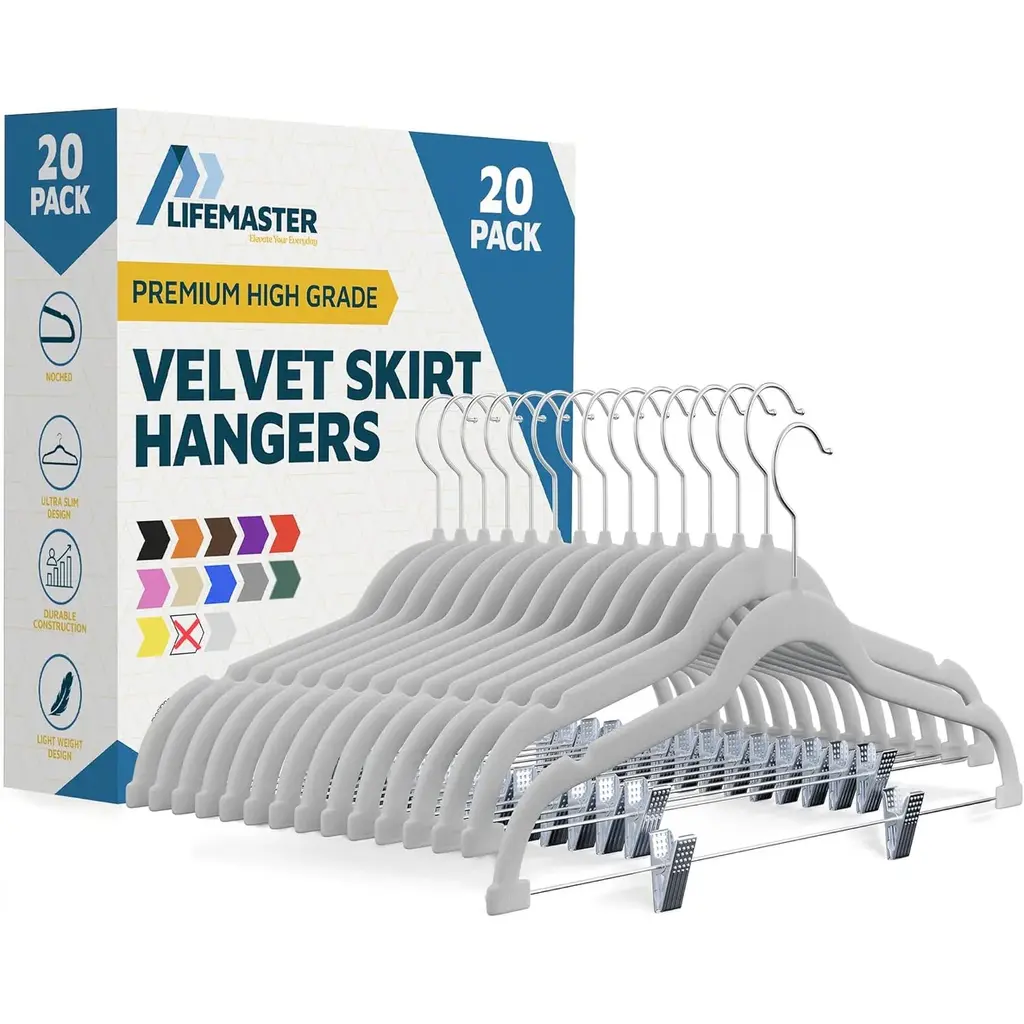 Transform your wardrobe organization with the Lifemaster Velvet Pants Hangers, a perfect blend of style, functionality, and durability. Designed to accommodate a variety of garments, these hangers are ideal for trousers, skirts, dresses, and more, helping you maintain a neat and accessible closet. The two adjustable clips are thoughtfully designed to fit garments of various widths, accommodating up to 15.6 inches. Equipped with plastic tips, the clips provide a secure grip while protecting your clothes from unsightly clip marks, ensuring your favorite pieces remain in pristine condition. Additionally, the hangers feature a 360-degree swivel hook, allowing you to access your clothing effortlessly from any angle. Whether you're selecting an outfit for the day or organizing freshly laundered items, these hangers make the process smooth and hassle-free. For added versatility, the hangers are designed with smart shoulder notches that securely hold garments with thin straps, such as dresses, skirts, and bras, preventing them from slipping off. The slim 0.2-inch design, crafted from recycled ABS material and finished with a soft velvet coating, ensures that your clothes stay in place, retain their natural shape, and remain wrinkle-free. Despite their slim profile, these hangers are sturdy enough to hold up to 5 pounds, making them both practical and elegant. Available in a sleek white color, the Lifemaster Velvet Pants Hangers come in a convenient with each hanger measuring 17.13’’ x 8.86’’. Their modern design not only enhances the appearance of your closet but also maximizes space, making them a must-have for any wardrobe.