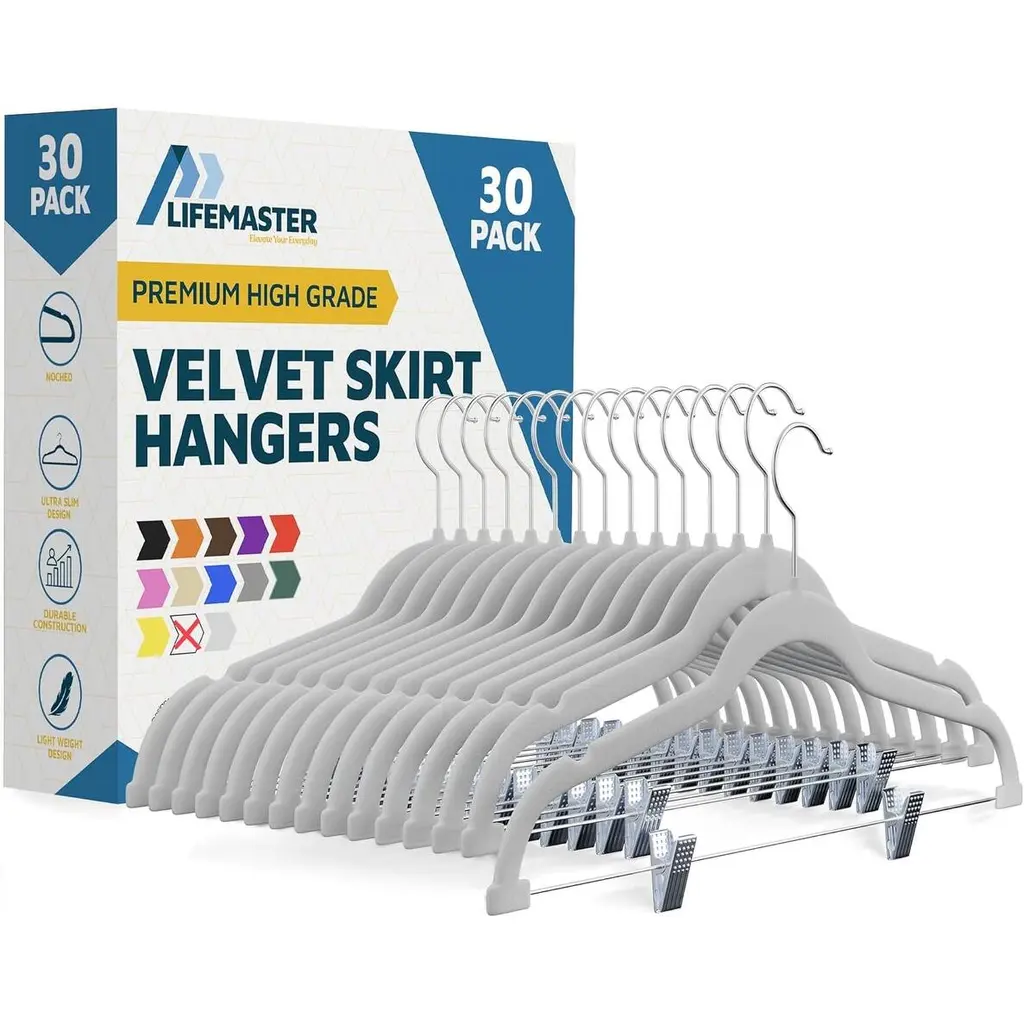 Velvet Skirt Hangers – With Adjustable Clips, 360 Degree Swivel Hook, And Non-Slip Shoulder Notch, Holds Up To 5 Lbs,white - Pack Of 30