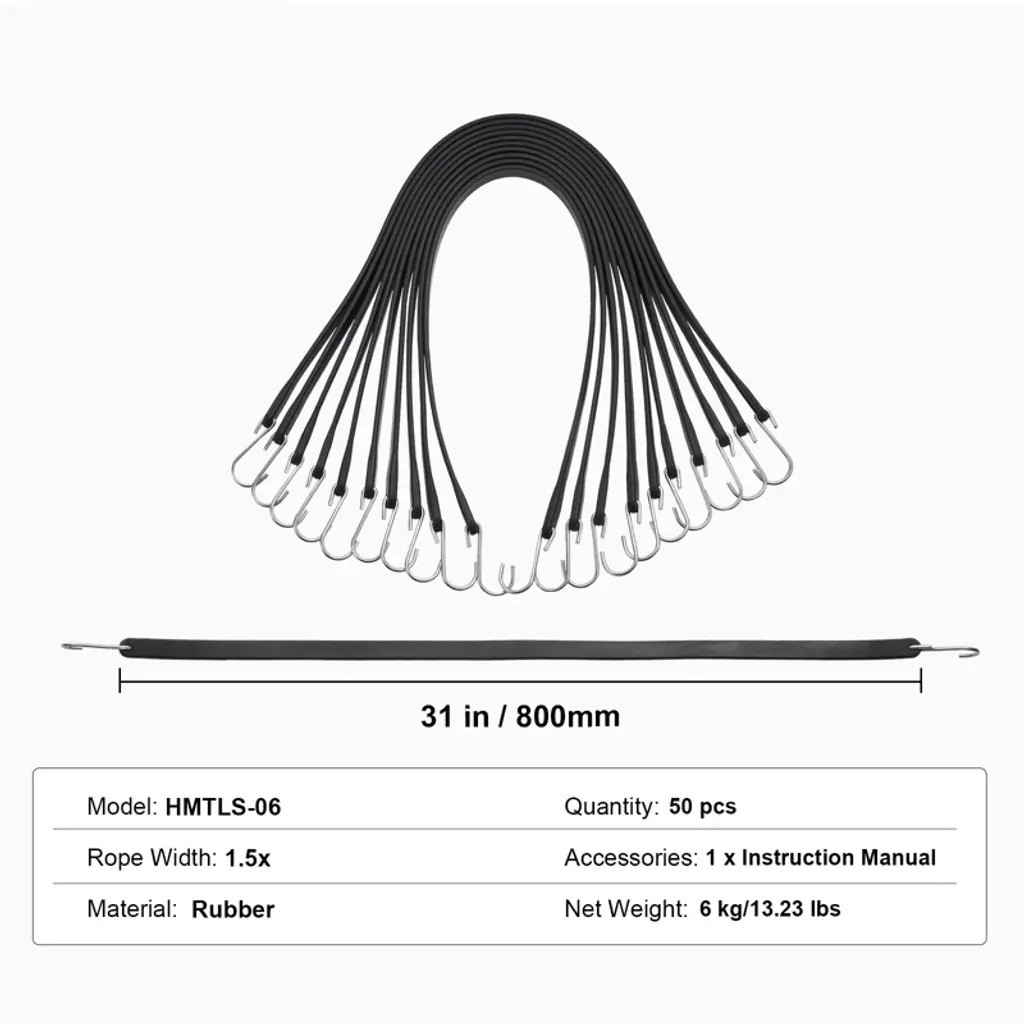 Vevor 50 Piece Flat Bungee Cord, 19.8 Mm Heavy Duty Bungee Straps With Steel S-hooks, 31" Elastic Bungee Rope For Cargo, Tarps, Black