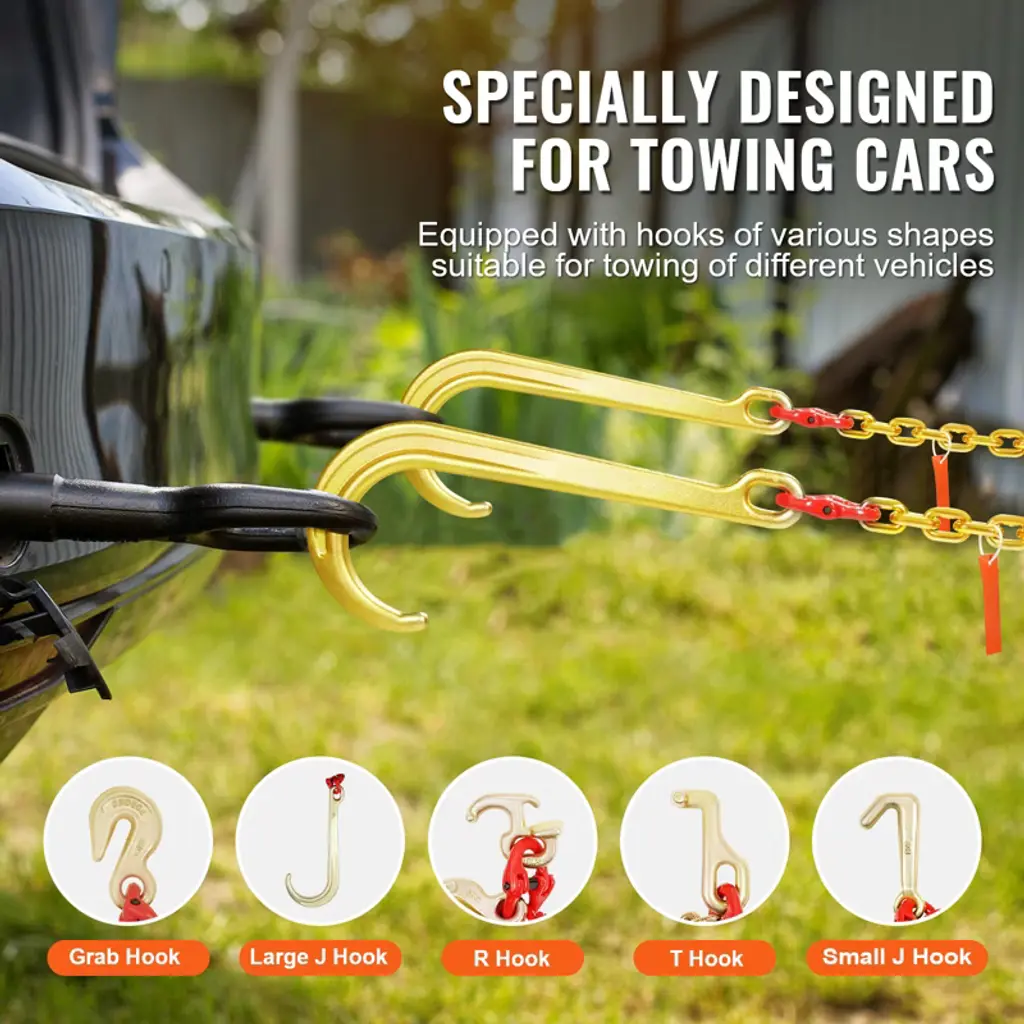 Vevor J Hook Chain, 2Pcs 5/16" X 6' G80 15" Long Shank J Hook Tow Chain With Rtj Cluster Hook & Grab Hook, 5400 Lbs Working Load