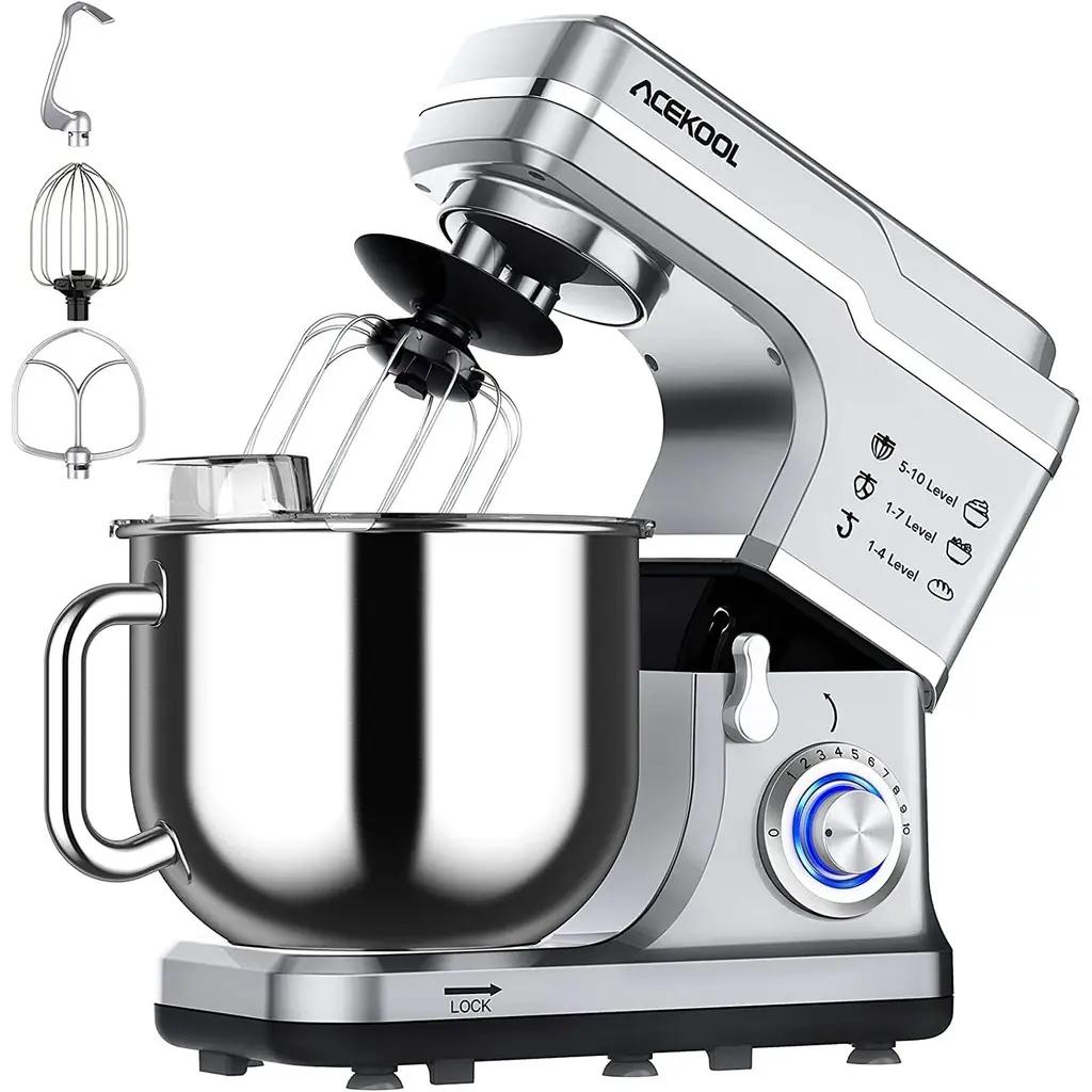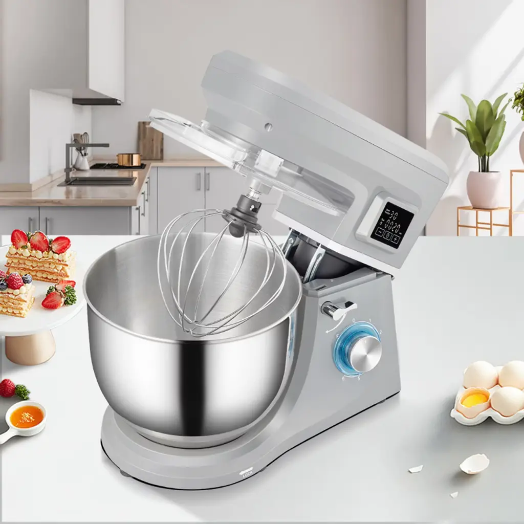 Feature: Comfortable User-Friendly Control Panel: Get ready to benefit from the intelligent LCD panel, operating this stand mixer couldn't be any easier. You can clearly perceive the precise remaining time from the screen, and set different durations according to different purposes. Thanks to the auto-stop function, you don't have to keep an eye on the machine all the time. Start a hassle-free baking journey even when your hands are occupied. Complete Accessories for Outstanding Performance: Everything you need to create the perfect mix is included. Our planetary mixer comes with 3 attachments (all dishwasher-safe): a dough hook to knead flour, a beater to mix butter & mashed potatoes, and a whisk to whip creams & custards. Thoughtful accessories like a scraper and splash-proof cover are also provided. Get ready to enjoy effortless baking and food preparation with this compact kitchen all-rounder. Unstoppable 6-Speed Pure Copper Motor: Choose how you mix! Equipped with a 660 W gear-driven copper motor, this mixer features continuous high-torque mixing, quiet operation, and outstanding reliability, standing up to the most demanding work in your kitchen. 6 speed levels allow you to perfectly mix different products at different speeds, from kneading dough slowly to whipping cream quickly. 1st-2nd speed for dough, 3rd-4th for butter & salad, 5th-6th for cream & egg white. Start mixing like never before. 7.4 Qt Stainless Bowl with Fermentation: Designed with a built-in thermostatic heating element, the 7.4 Qt / 7 L stainless steel bowl can automatically heat up to the appropriate temperature for fermentation. Raw materials for 6 toasts can be kneaded at a time, saving half of your waiting time even in winter. It is convenient to change the attachments and pour in the ingredients thanks to the tilt-head design. Plus, the bowl is dishwasher-safe and comes with a splash-proof cover. Never Worry About Mixing: Are you ready to mix! Don't stop! The planetary mixing and stirring mechanisms greatly contribute to full contact between the beater and the bowl's inner wall. The flat beater is designed with a soft silicone edge, which can effortlessly scrape off the sticky ingredients on the bowl and then mix them together. It doesn't even matter if they are left on the sides or at the bottom. Don't hesitate to knead dough and various bakery essentials with VEVOR's commercial mixer. Package Content 1 x Stand Mixer 1 x 7L Stainless Bowl (with Cover) 1 x Set of Mixing Part (Hook / Beater / Whisk) 1 x Scraper 1 x User Manual
