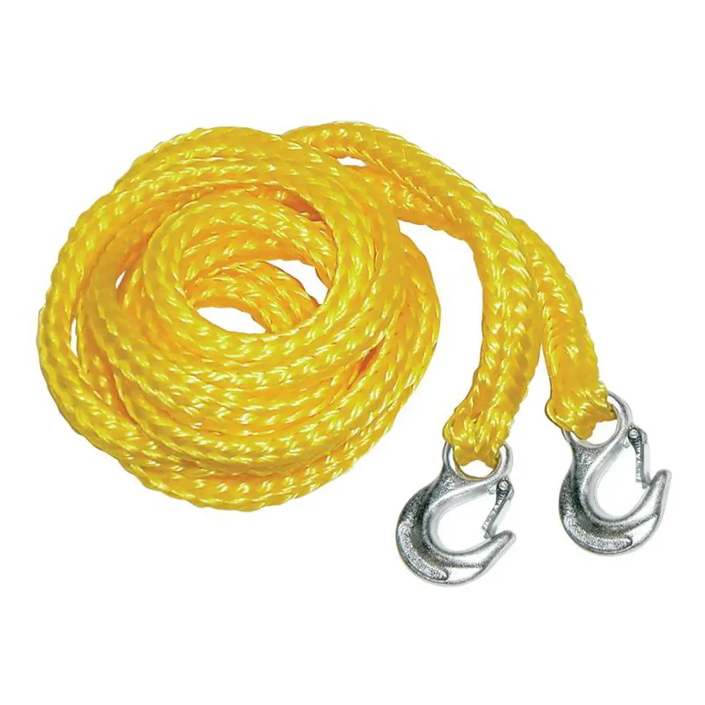 Feature: Tough 3/8" x 100' Synthetic Rope: Boasting a 26,500 lbs/117.9 kN breaking strength, it's a perfect match for vehicles up to 8,833 lbs/4,006.6 kg. Made from 12-strand high molecular polyethylene, each weave is a mere 0.6"/15 mm apart. With a PU coating for extra toughness, this rope stays light and strong. Compared to traditional steel ropes, it provides security without the snap-back. Robust Ram's Horn Hook: Forged from top-notch steel and boasting a breaking strength of 20,988 lbs/93.4 kN, our winch rope hook is designed to last. The powder coating fends off rust for longer wear. No more worries about heat or slips – our hook comes with a handy pull strap for a cool, secure grip every time. Unique Design at Both Ends: Double the protection, double the durability! Our synthetic winch rope starts with a 5 ft/1.5 m nylon protective sleeve to shield against rough edges, and ends with a 6 ft/1.8 m orange warning sleeve as a smart reminder of your winching limit. Simple Installation: Installation's a breeze with our 4-step setup! Just tie, thread, and go – but avoid pulling out the entire winch synthetic rope during use. To prevent the rope from being cut by sharp edges on the guide plate, we recommend ensuring at least 3/8" to 1/2" of clearance between the opening of the fairlead and the edges of the mounting plate. Suitable for Your Vehicle: Find your perfect fit with our winch line! Available in various breaking strengths to match your needs. This φ3/8" (9.5 mm) rope is a great companion for winches of 9,500-13,500 lbs/42.3-60.1 kN (1.5 times the full load weight of the vehicle). Whether you're braving the wilds in your off-roader or lifting heavy loads in forestry, it's got your back in any situation. Package Content 1 x Winch Rope 1 x User Manual