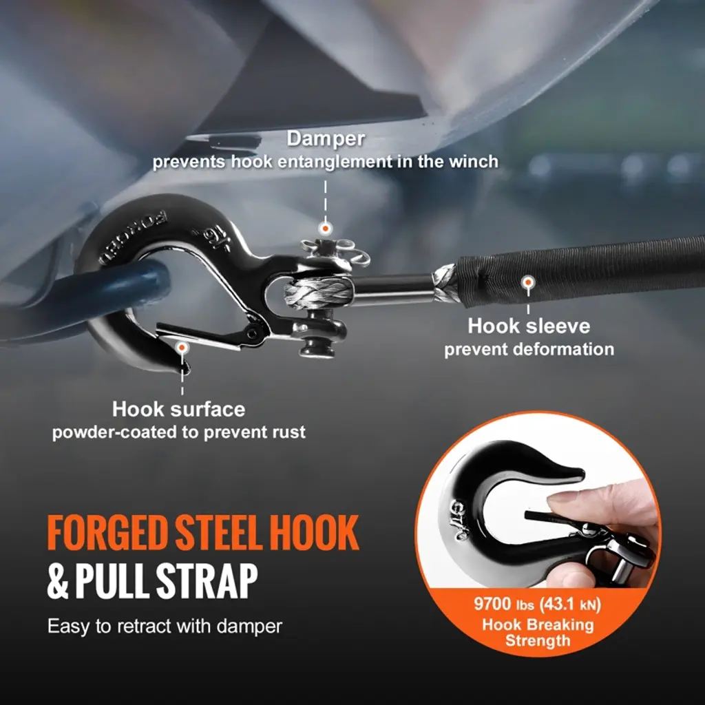 Vevor Synthetic Winch Rope,3/16 Inch X 50 Feet 8,350 Lbs Synthetic Winch Line Cable Rope With Protective Sleeve + Stopper + Forged Winch Hook, Black