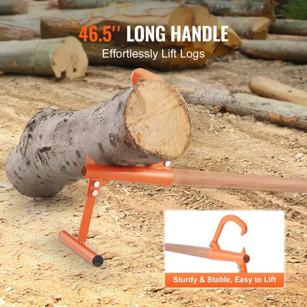 Vevor Timberjack, 46.5 In, Heavy Duty Log Lifter With Wooden Handle, Log Roller With Adjustable Cant Hook, For Logs Ups To 15" Dia, Orange