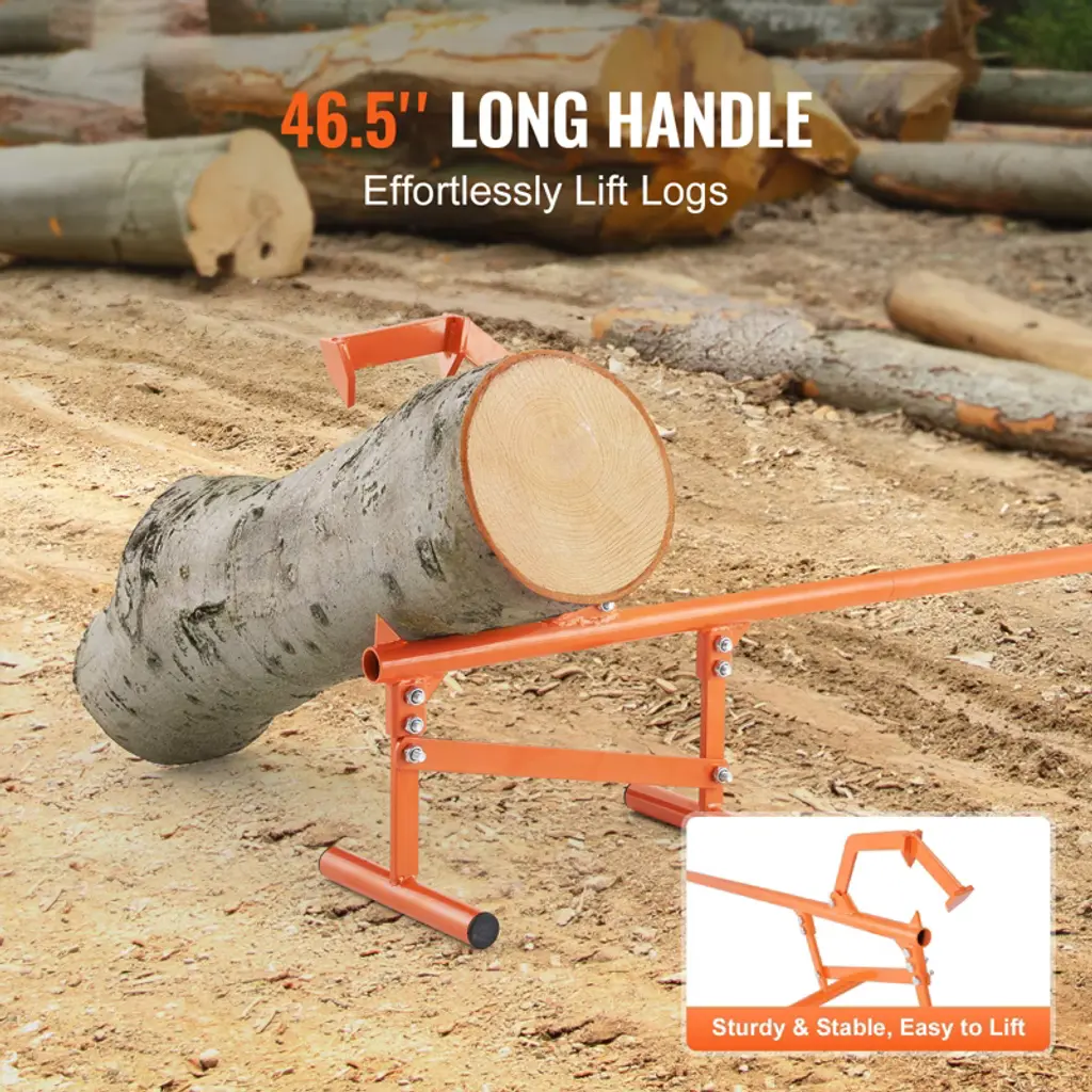 Vevor Timberjack, 46.5 In, Heavy Duty Steel Log Lifter, Log Roller With Adjustable Cant Hook, Logging Tools Log Jack For Logs Ups To 15" Dia, Orange