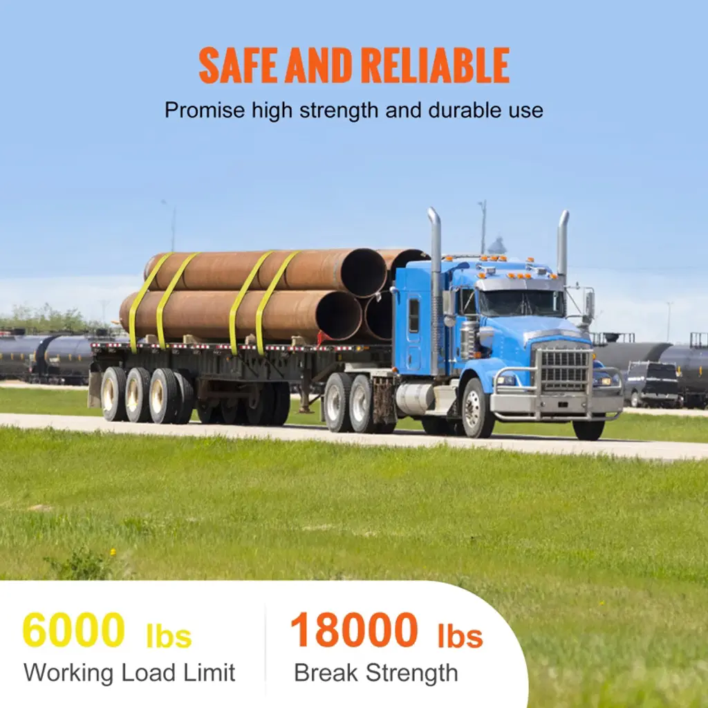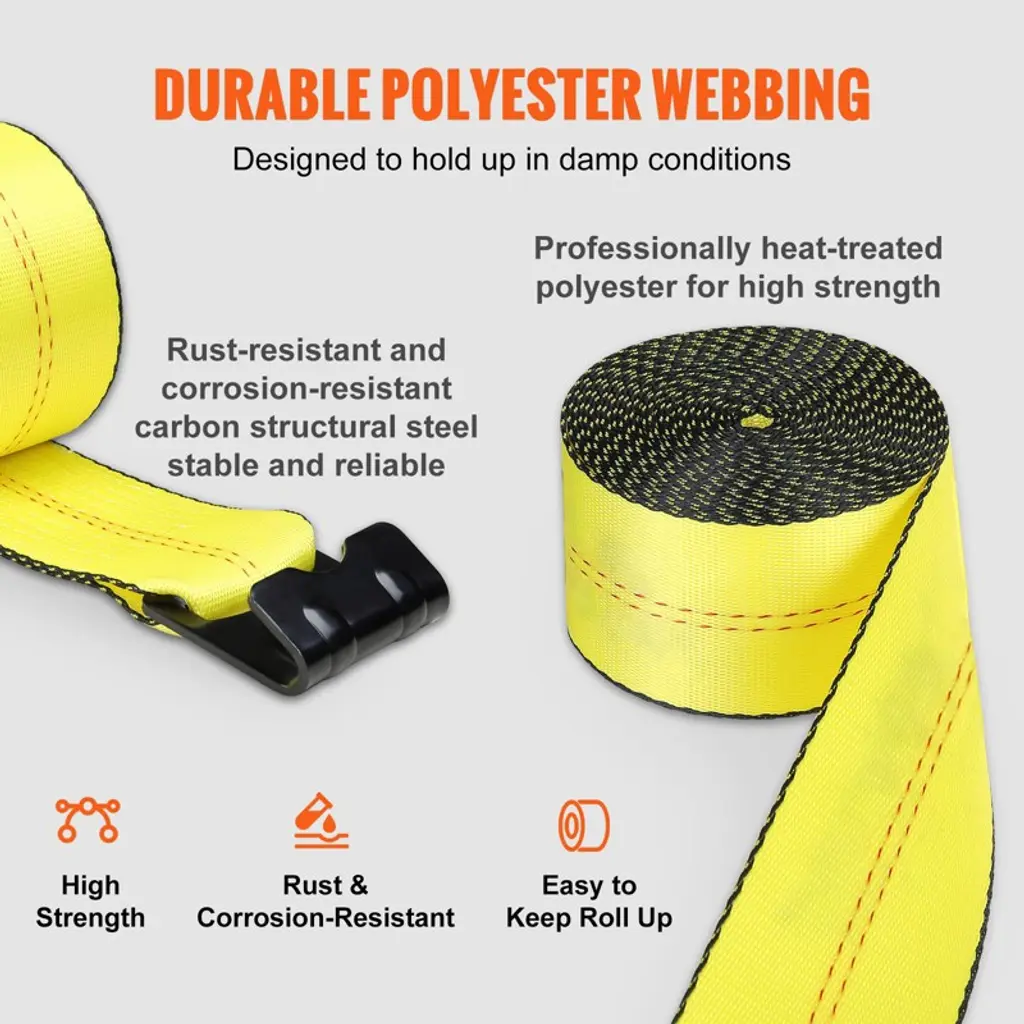 Vevor Winch Straps, 4" X 30', 6000 Lbs Load Capacity, 18000 Lbs Break Strength, Truck Straps With Flat Hook, Yellow (4 Pack)