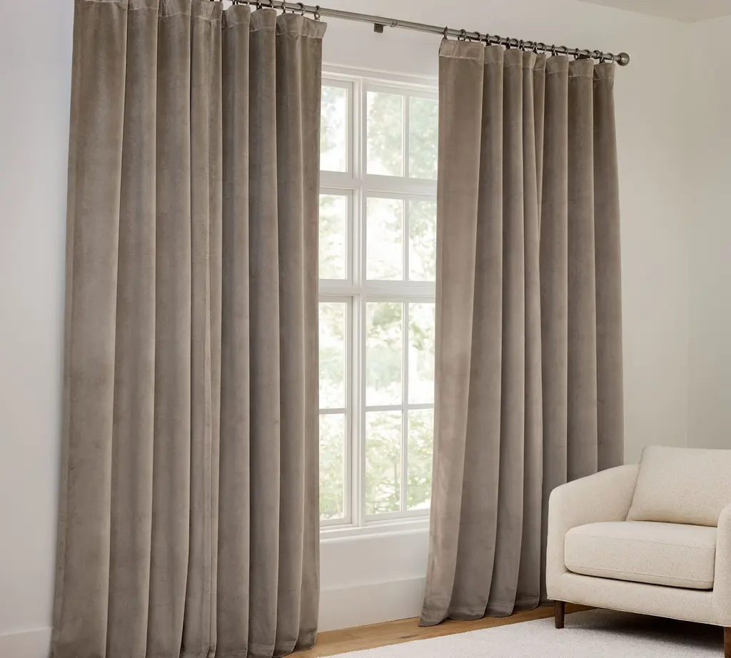 Our elegant velvet curtain will look great in your living room, bedroom, office space, etc. It will give you the needed privacy and block out most of the incoming light.Velvet fabric will add a warm atmosphere to your interior. Thanks to the metal hooks, the curtain can be easily hung on curtain tracks. The curtain can be machine washed. Please note that the curtain rod is not included.