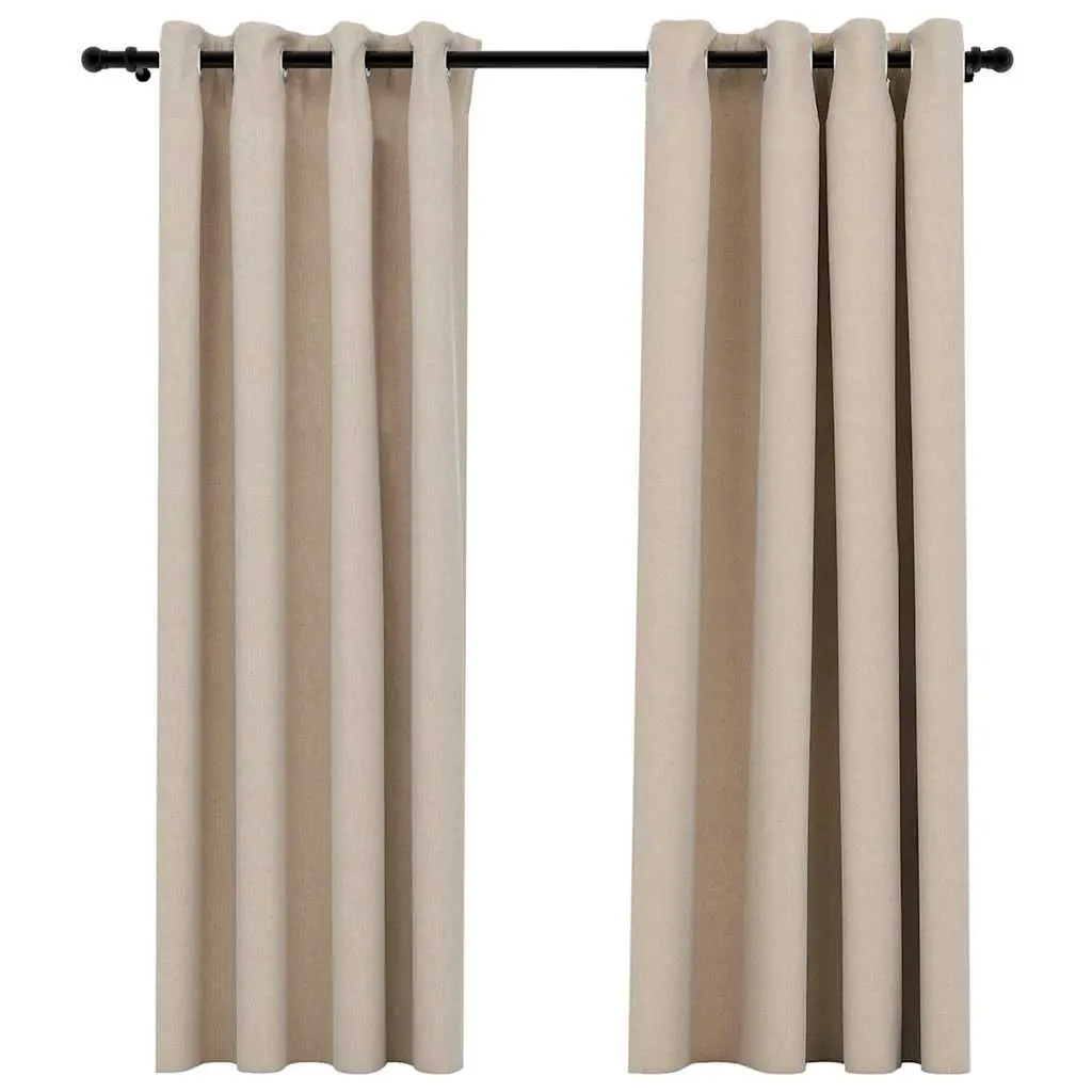 Vidaxl Linen-Look Blackout Curtain With Hooks Beige 114.2x96.5"