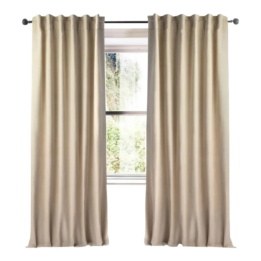 Our linen-look blackout curtains are suitable for any interior, such as your living room, bedroom, office space and so on. It gives you privacy and blocks most of the incoming light.The curtains can be easily hung on curtain tracks, thanks to the metal hooks. The curtains, made of premium linen-look 100% polyester fabric, are machine washable. Please note: The curtain rod is not included.