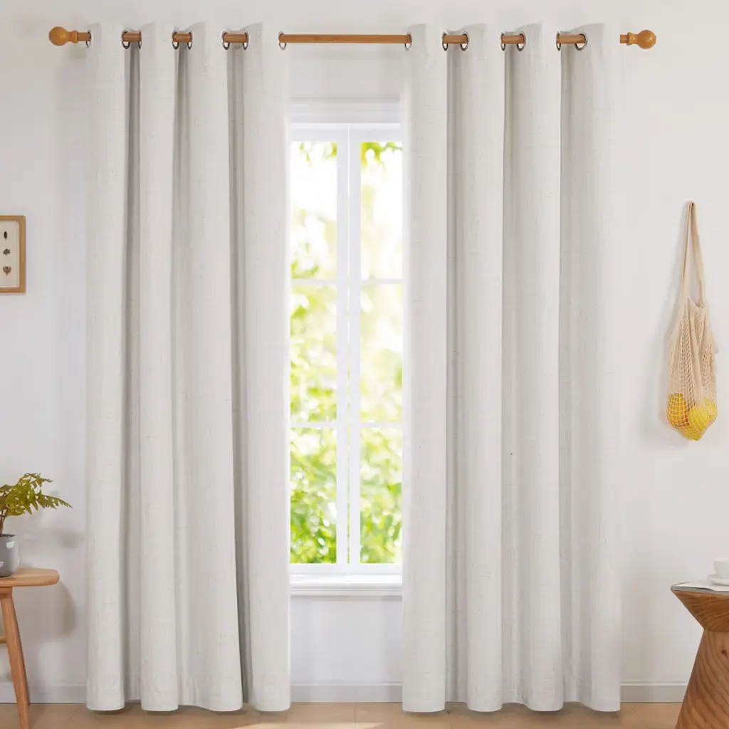 Our linen-look blackout curtains are suitable for any interior, such as your living room, bedroom, office space and so on. It gives you privacy and blocks most of the incoming light.The curtains can be easily hung on curtain tracks, thanks to the metal hooks. The curtains, made of premium linen-look 100% polyester fabric, are machine washable. Please note: The curtain rod is not included.