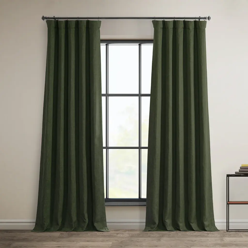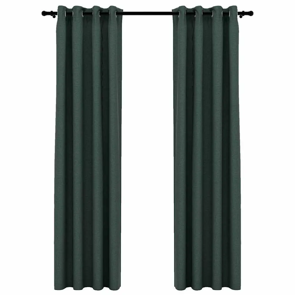 Vidaxl Linen-Look Blackout Curtains With Hooks 2 Pcs Green 55.1x96.5"