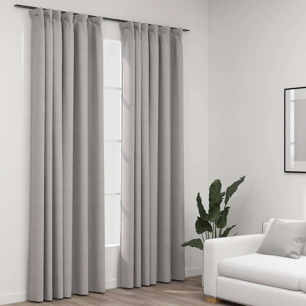 Vidaxl Linen-Look Blackout Curtains With Hooks 2 Pcs Grey 55.1x96.5"