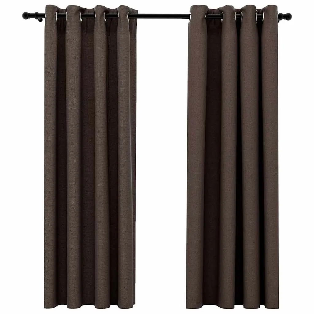 Vidaxl Linen-Look Blackout Curtains With Hooks 2 Pcs Taupe 55.1x96.5"