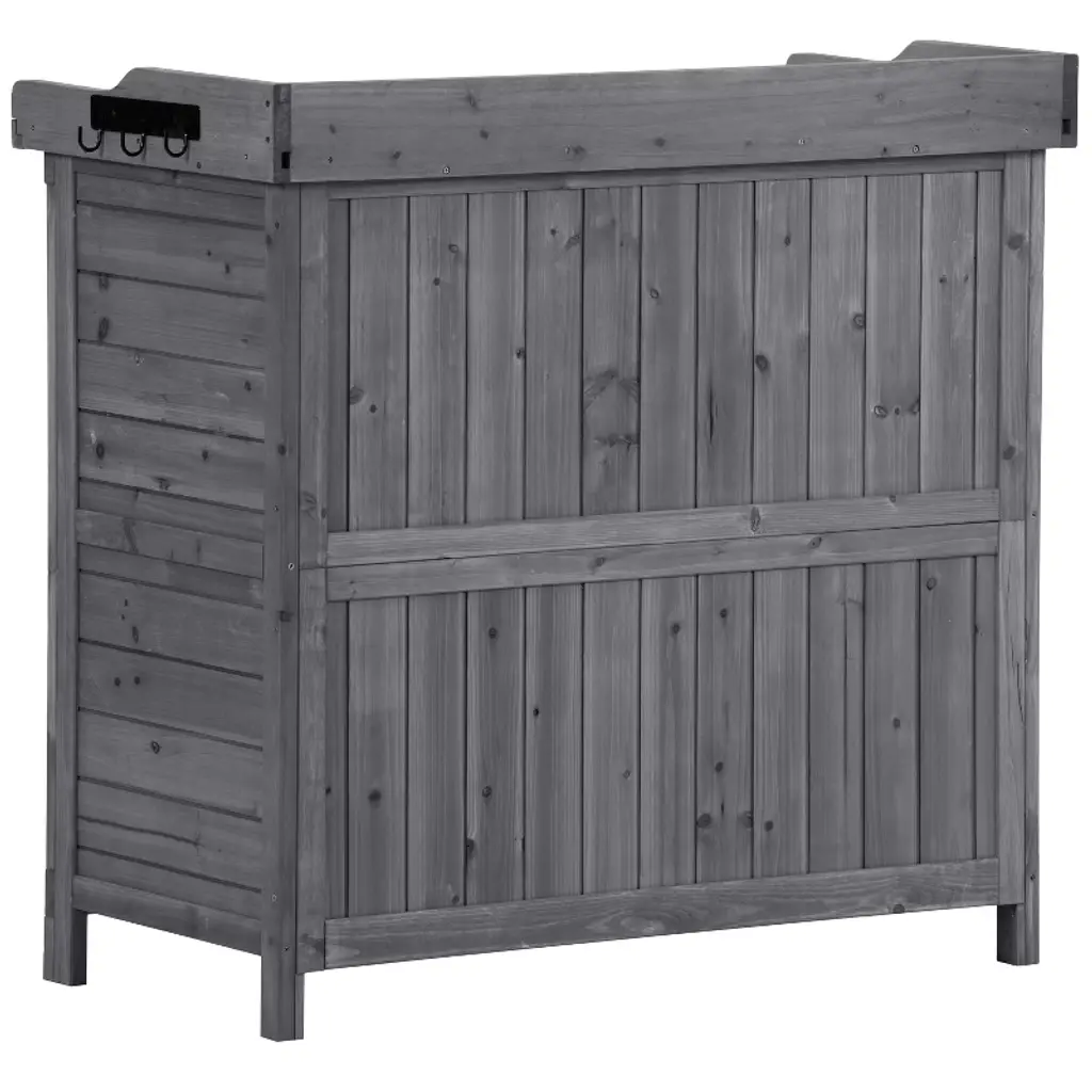 Whisen Rustic Outdoor Potting Bench Table, Garden Workstation With 2-tier Shelves And Side Hook - Gray
