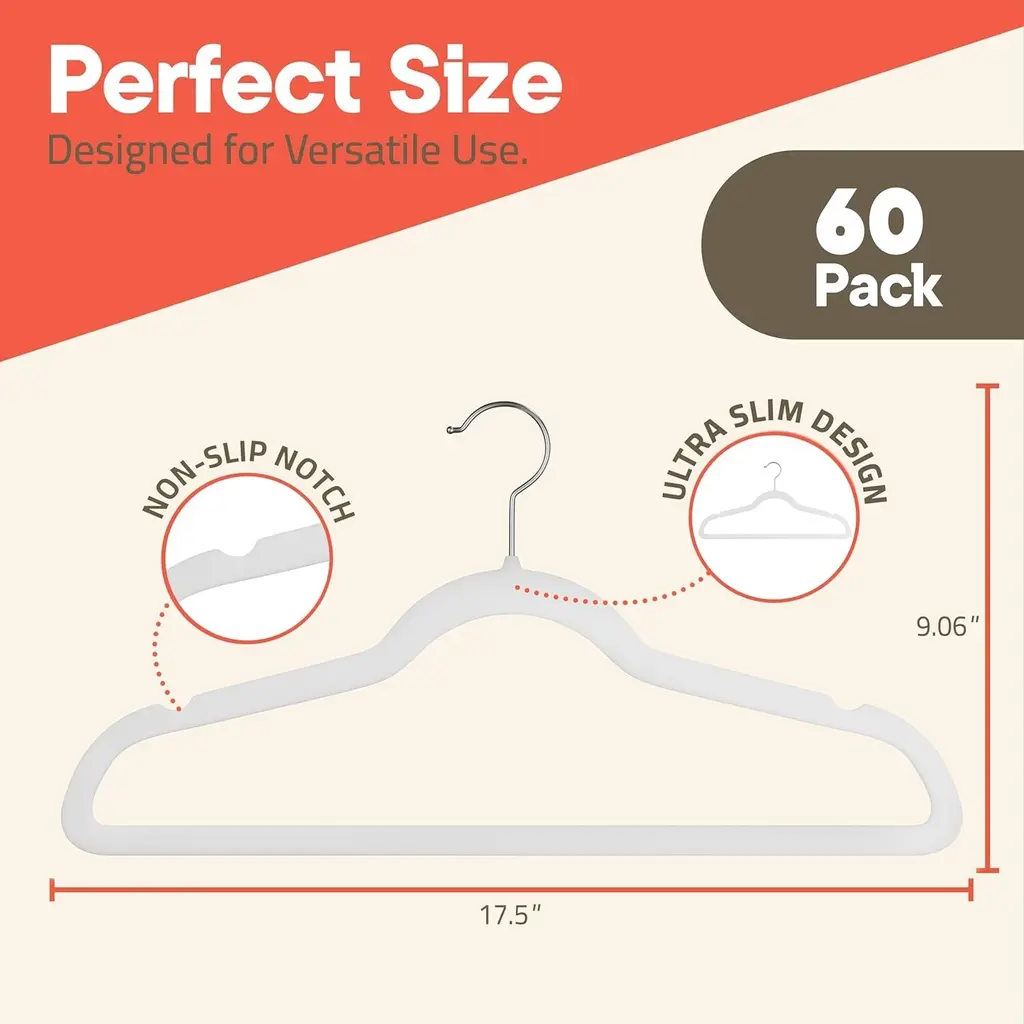 White Velvet Hangers– 360° Swivel Hook, Non-Slip And Space Saving Hangers, Heavy-Duty 11 Lbs Weight Capacity. - 60 Pack