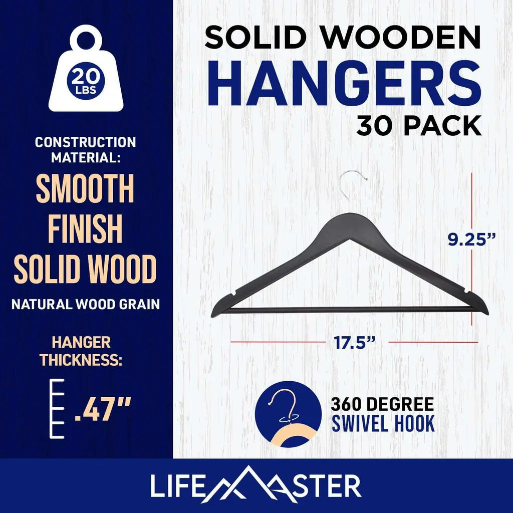 Wooden Clothes Hangers – With 360 Degree Swivel Hook And Non-Slip Shoulder Notch, Holds Up To 10 Lbs - Pack Of 30 - Brown
