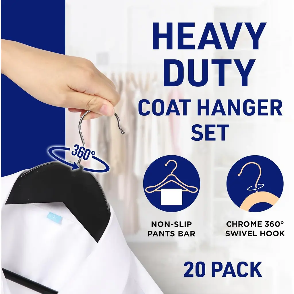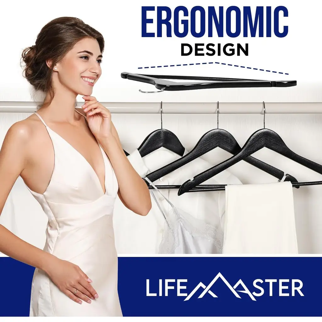 Upgrade your wardrobe with Lifemaster Wooden Clothes Hangers—a perfect blend of style, durability, and functionality for your wardrobe. Crafted with a lightweight yet reinforced natural wood grain, these hangers are designed to securely support everything from delicate dresses to heavy coats. With their 360-degree swivel hook, accessing your clothes from any angle is effortless, making wardrobe organization smooth and hassle-free. The hangers feature smart shoulder grooves that ensure even items with thin straps stay in place, providing a versatile solution for hanging dresses, bras, and skirts. The smooth high-quality natural wood with a black color finish not only adds an elegant touch but also helps maintain the shape of your clothes, preventing wrinkles and keeping them looking fresh. Available in a convenient, these hangers are ideal for upgrading your closet space. Measuring 17.5’’ x 0.47’’ x 9.25’’, they offer the perfect size for a variety of garments, making them an essential addition to any wardrobe. Keep your clothes organized and in top condition with Campior Wooden Clothes Hangers.