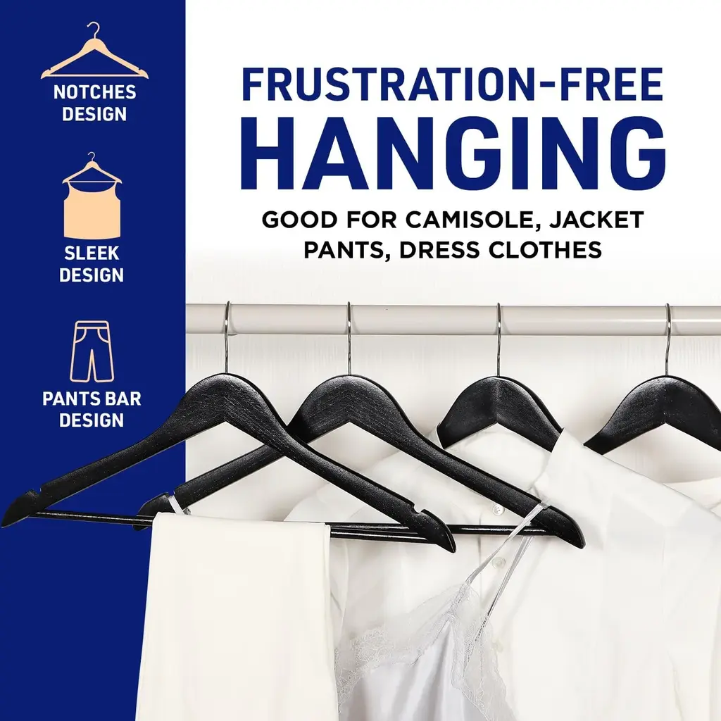 Wooden Clothes Hangers – With 360 Degree Swivel Hook And Non-Slip Shoulder Notch, Holds Up To 10 Lbs - Pack Of 5 - Black