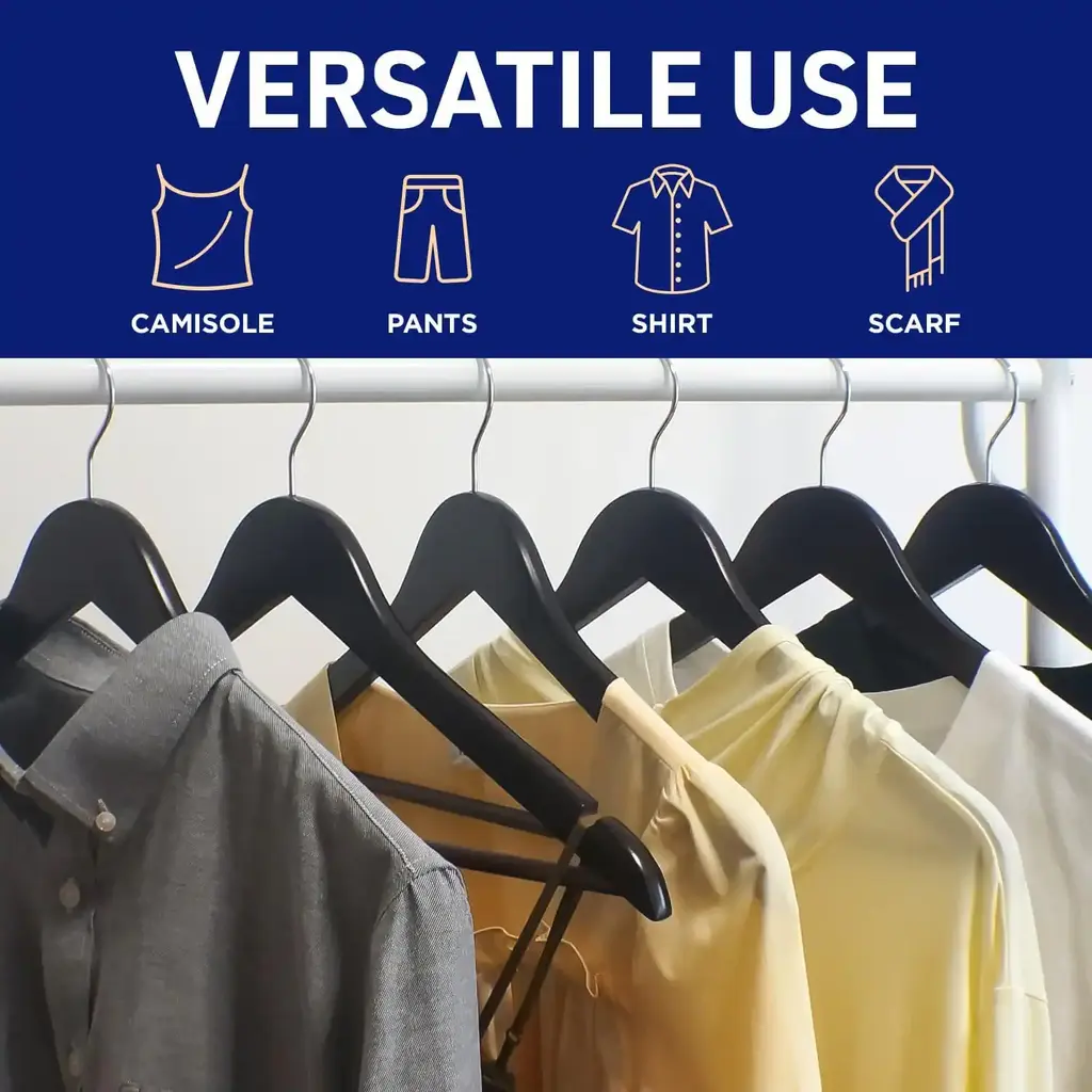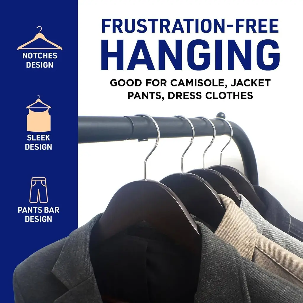 Upgrade your wardrobe with Lifemaster Wooden Clothes Hangers—a perfect blend of style, durability, and functionality for your wardrobe. Crafted with a lightweight yet reinforced natural wood grain, these hangers are designed to securely support everything from delicate dresses to heavy coats. With their 360-degree swivel hook, accessing your clothes from any angle is effortless, making wardrobe organization smooth and hassle-free. The hangers feature smart shoulder grooves that ensure even items with thin straps stay in place, providing a versatile solution for hanging dresses, bras, and skirts. The smooth high-quality natural wood with a brown color finish not only adds an elegant touch but also helps maintain the shape of your clothes, preventing wrinkles and keeping them looking fresh. Available in a convenient , these hangers are ideal for upgrading your closet space. Measuring 17.5’’ x 0.47’’ x 9.25’’, they offer the perfect size for a variety of garments, making them an essential addition to any wardrobe. Keep your clothes organized and in top condition with Campior Wooden Clothes Hangers.