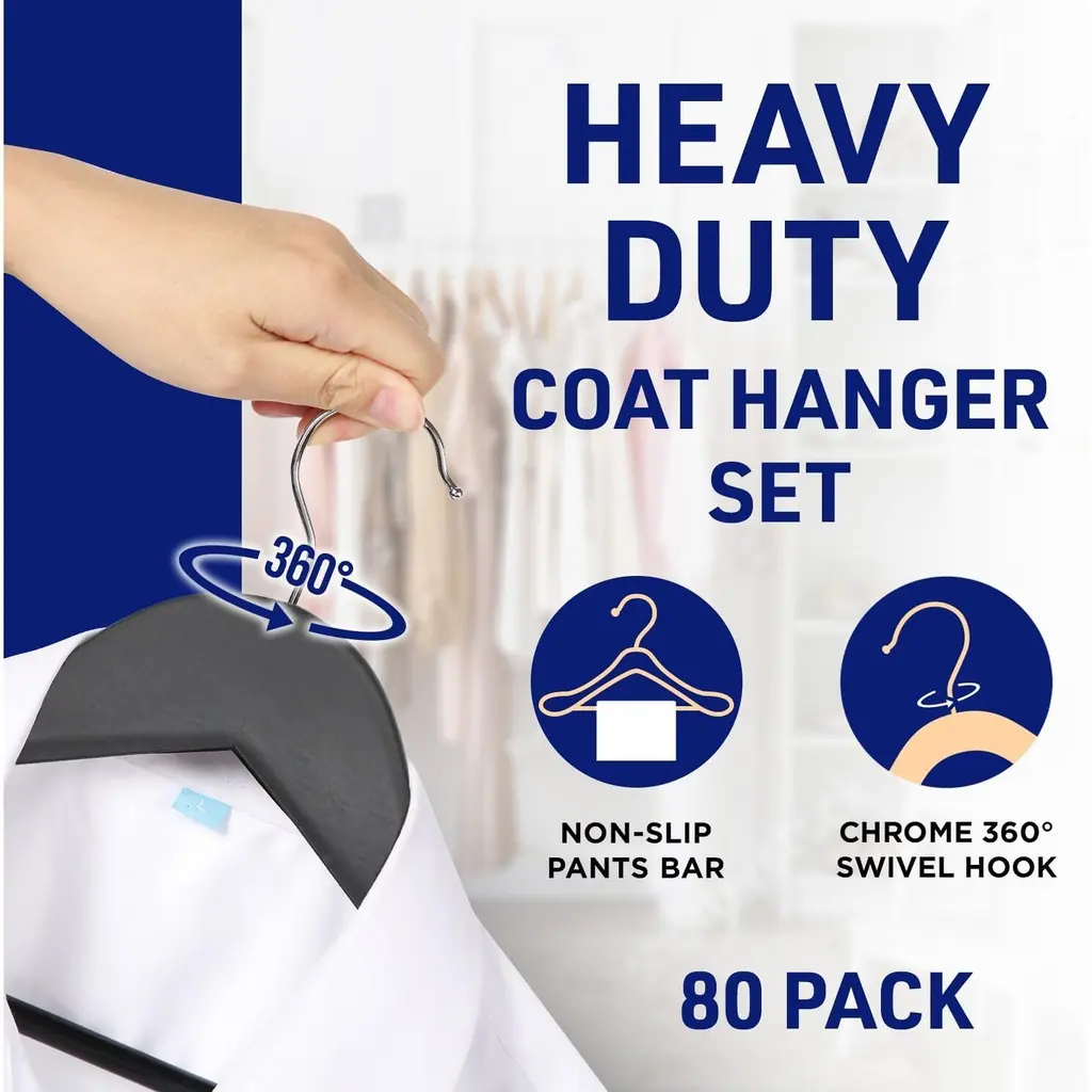 Wooden Clothes Hangers – With 360 Degree Swivel Hook And Non-Slip Shoulder Notch, Holds Up To 10 Lbs - Pack Of 80 - Brown