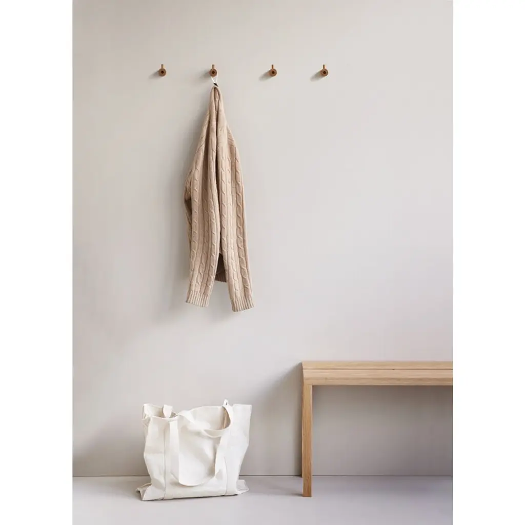 Moebe's wooden wall hook is an exquisite everyday assistant. Made from two solid wood parts, the hanger lets the beauty of the oak surface speak for itself: simplicity is indeed just the ticket, as the Danish design brand's other items also go to show. Stripped of all unnecessary elements, the hook is even superbly simple to install – the larger part is first screwed to the wall, after which the smaller part is attached from above, hiding the screw from sight. Why not use Moebe's wall hooks to whip up a creative arrangement for coats, bags and other essentials!
