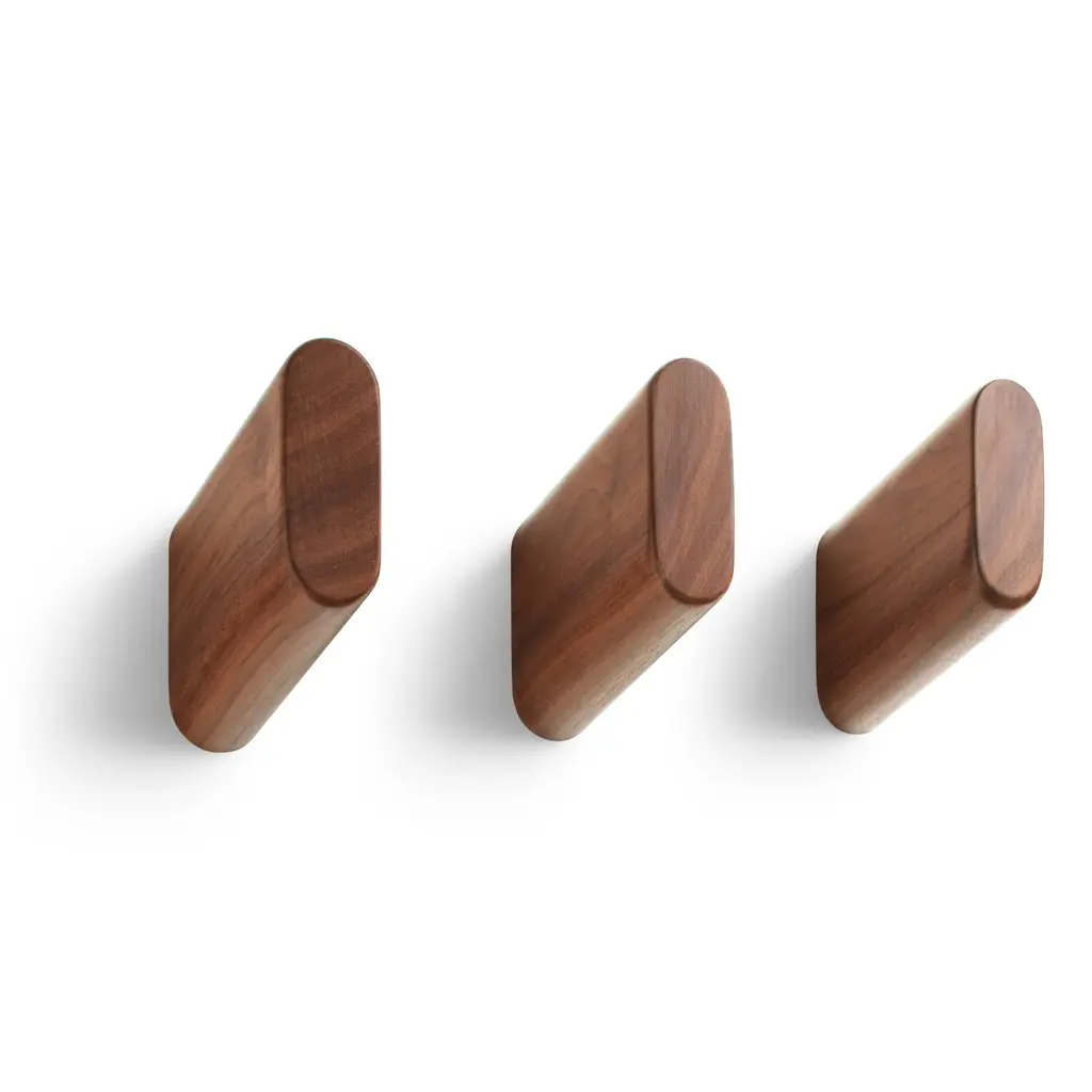 The Wook can be mounted freely to hold what you need, where you need it. Let it hang solo or form a super group of storage with multiples. Ample enough to hold bags and hefty coats, the smooth solid wood hook faces upward to help keep items in place.