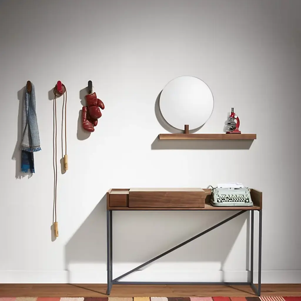 Add some modern spice to your entryway, bedroom, living room and kitchen with the Wook Wall Hook by Blu Dot. This solid wood hook faces upwards to keep all your belongings in place and is finished in the bold color of your choice. Includes simple mounting bracket. Additional hardware required.