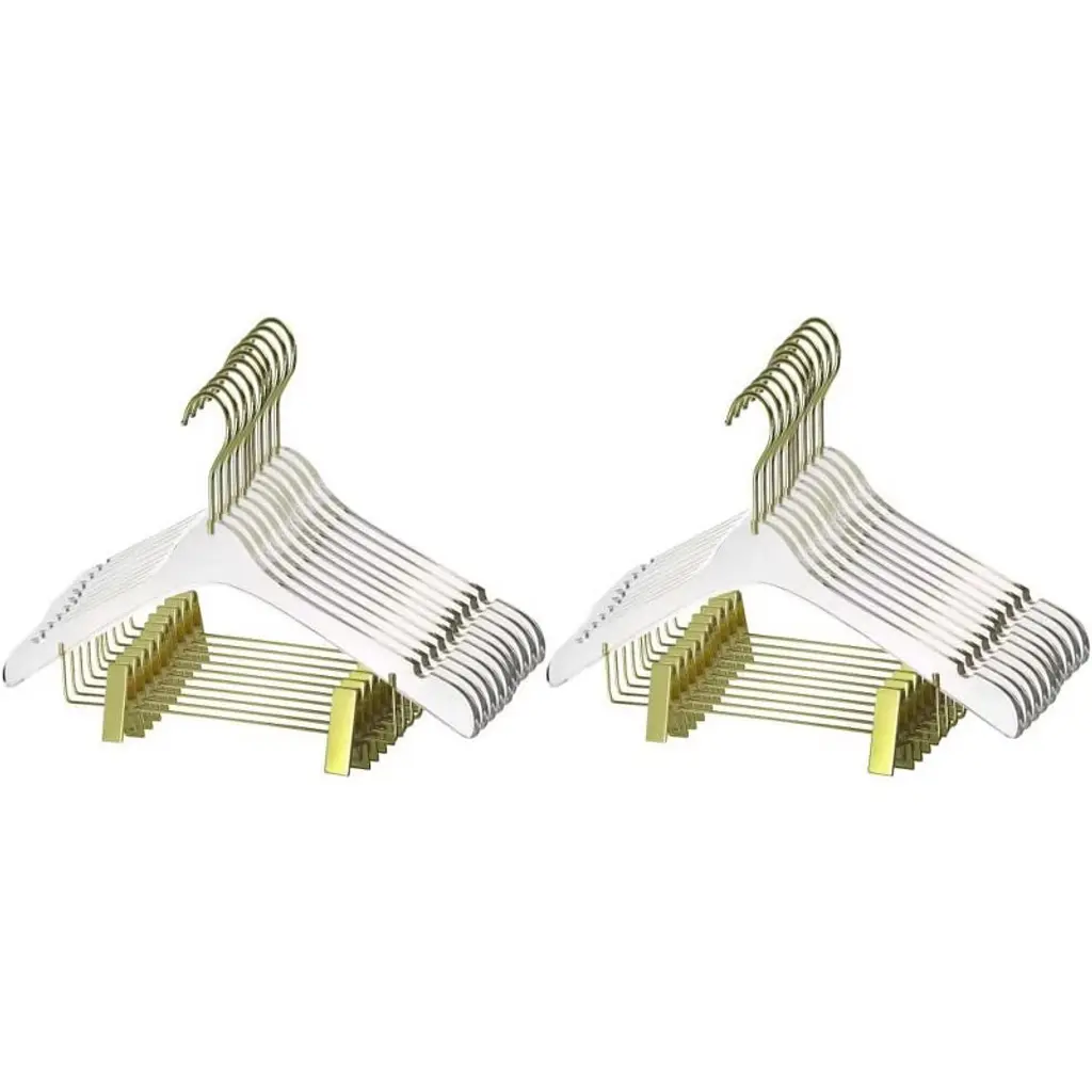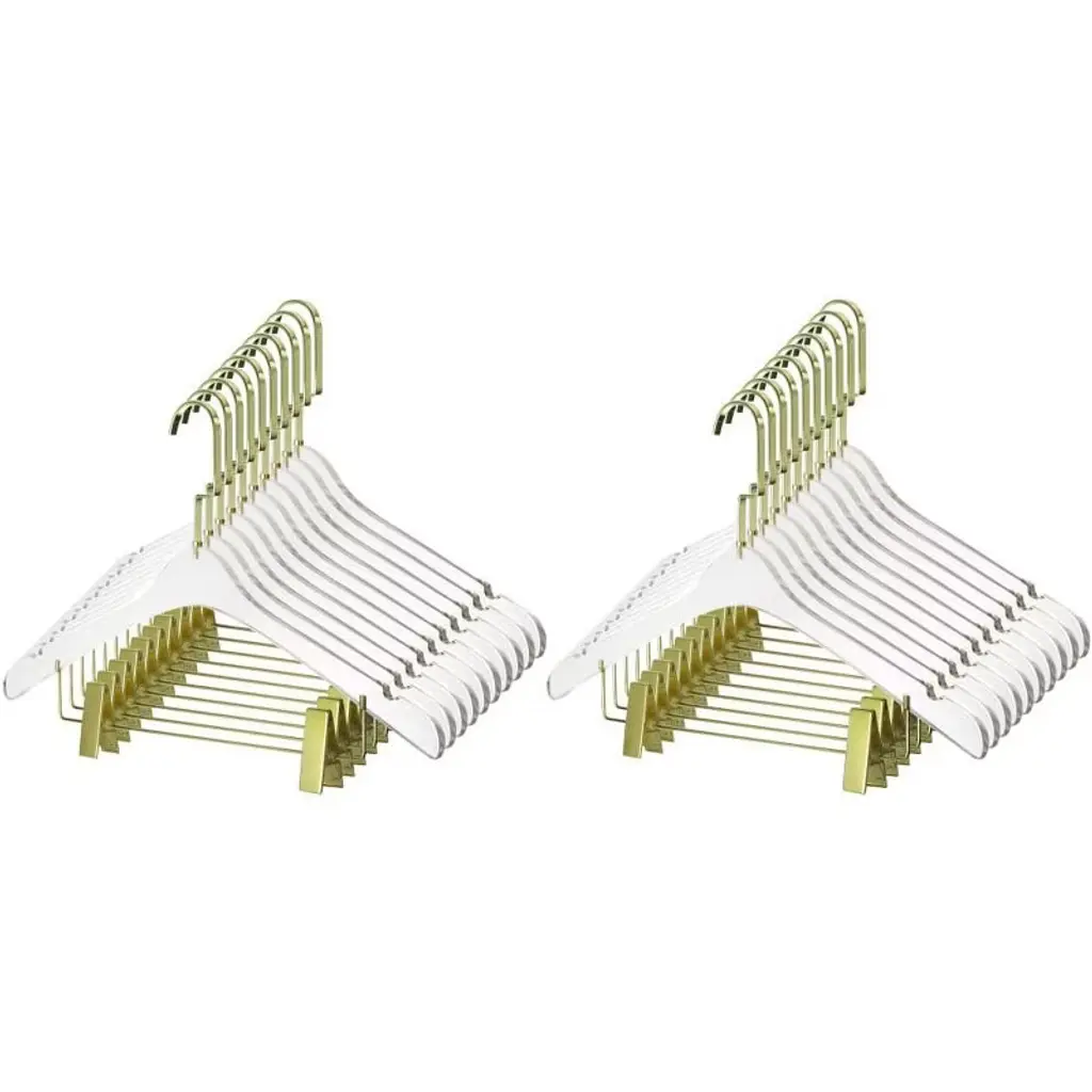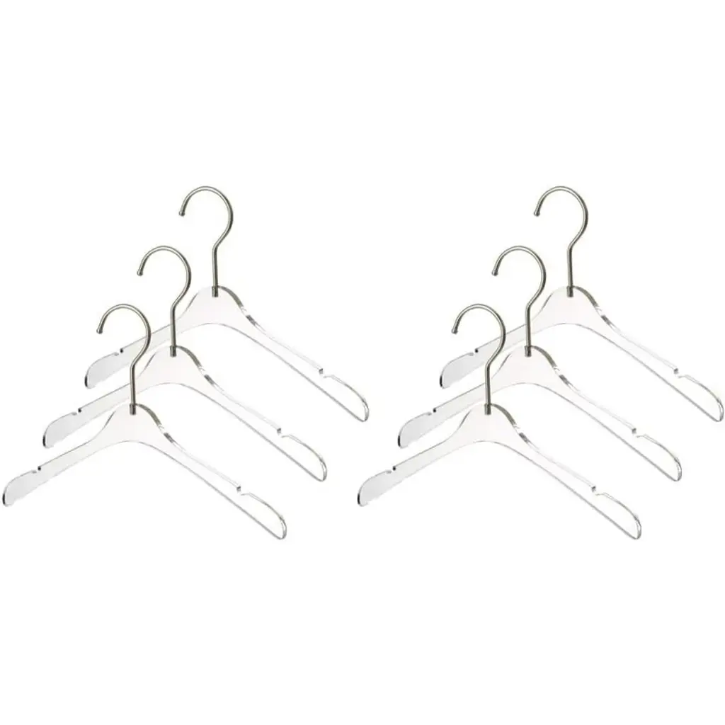 "SLEEK & MODERN - Our Acrylic Hangers are an essential for every closet. They're made of crystal-clear acrylic for a luxurious look and feel. HANGER SHAPE - Flat body can hold all shapes and styles of coats, skirts, trousers and dresses to keep your clothing in their perfect shape. DESIGNED FOR WARDROBE AND CLOSETS - These are the best organization accessories to make your closet look better and tidy. The thick clear acrylic construction and unique design ensures static hold of your clothes. PACKAGE INCLUDES - Set of 6, 12, or 32 Acrylic/Lucite hangers. PERFECT STANDARD DIMENSIONS - Men's hanger measures 17.3 in. Length, Kid's hanger measures 14 in. Length, Baby's hanger measures 12 in. Length."