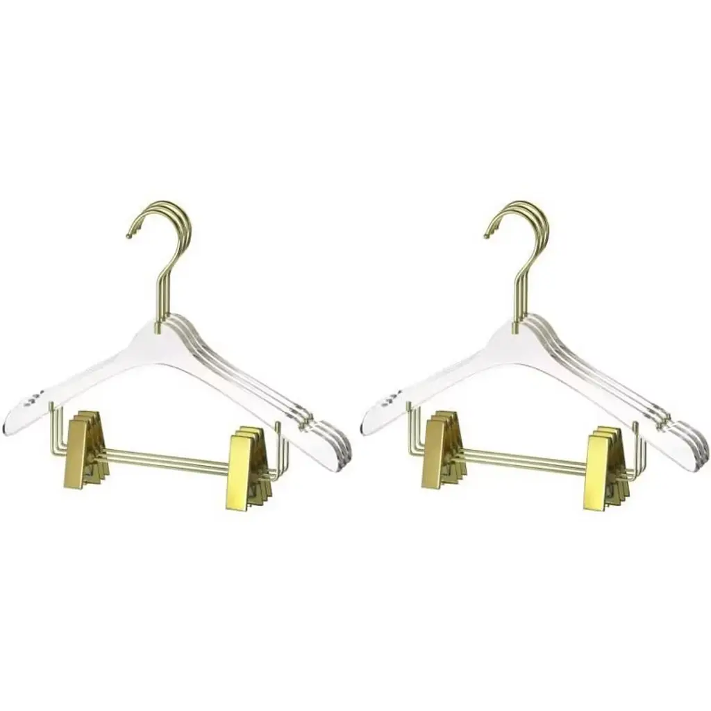 "SLEEK & MODERN - Our Acrylic Hangers are an essential for every closet. They're made of crystal-clear acrylic for a luxurious look and feel. HANGER SHAPE - Flat body can hold all shapes and styles of coats, skirts, trousers and dresses to keep your clothing in their perfect shape. DESIGNED FOR WARDROBE AND CLOSETS - These are the best organization accessories to make your closet look better and tidy. The thick clear acrylic construction and unique design ensures static hold of your clothes. PACKAGE INCLUDES - Set of 6, 12, or 32 Acrylic/Lucite hangers. PERFECT STANDARD DIMENSIONS - Men's hanger measures 17.3 in. Length, Kid's hanger measures 14 in. Length, Baby's hanger measures 12 in. Length."