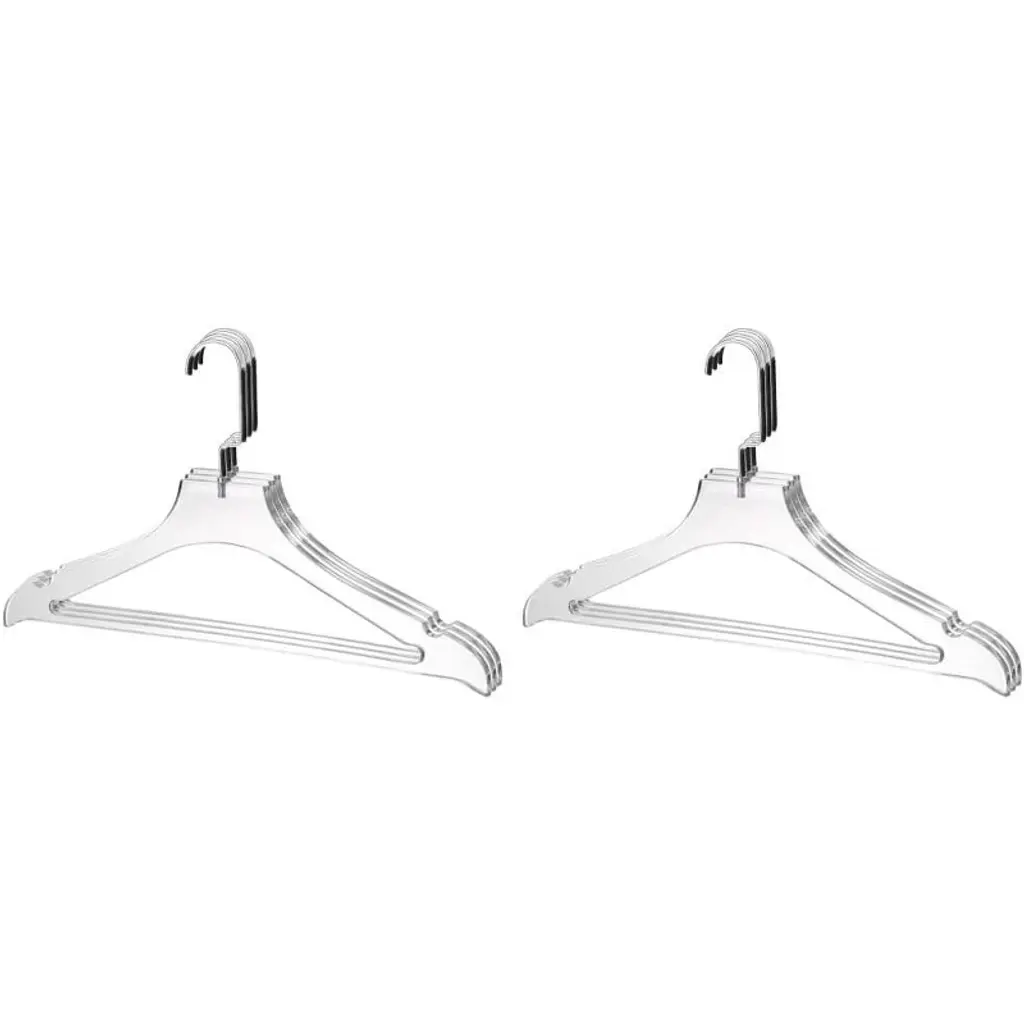 Ybm Home Quality Acrylic Clear Coat Hangers With Bar, Pack Of 20, Silver W/ Flat Hook, 4120-20
