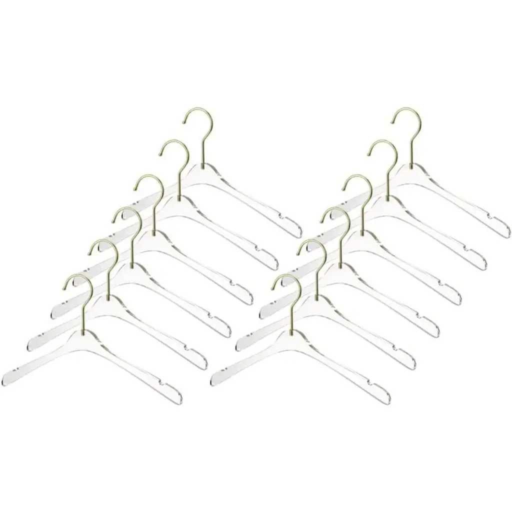 Ybm Home Quality Acrylic Clear Hangers, Coats, Skirts, Gold W/ Flat Hook, 4104-12