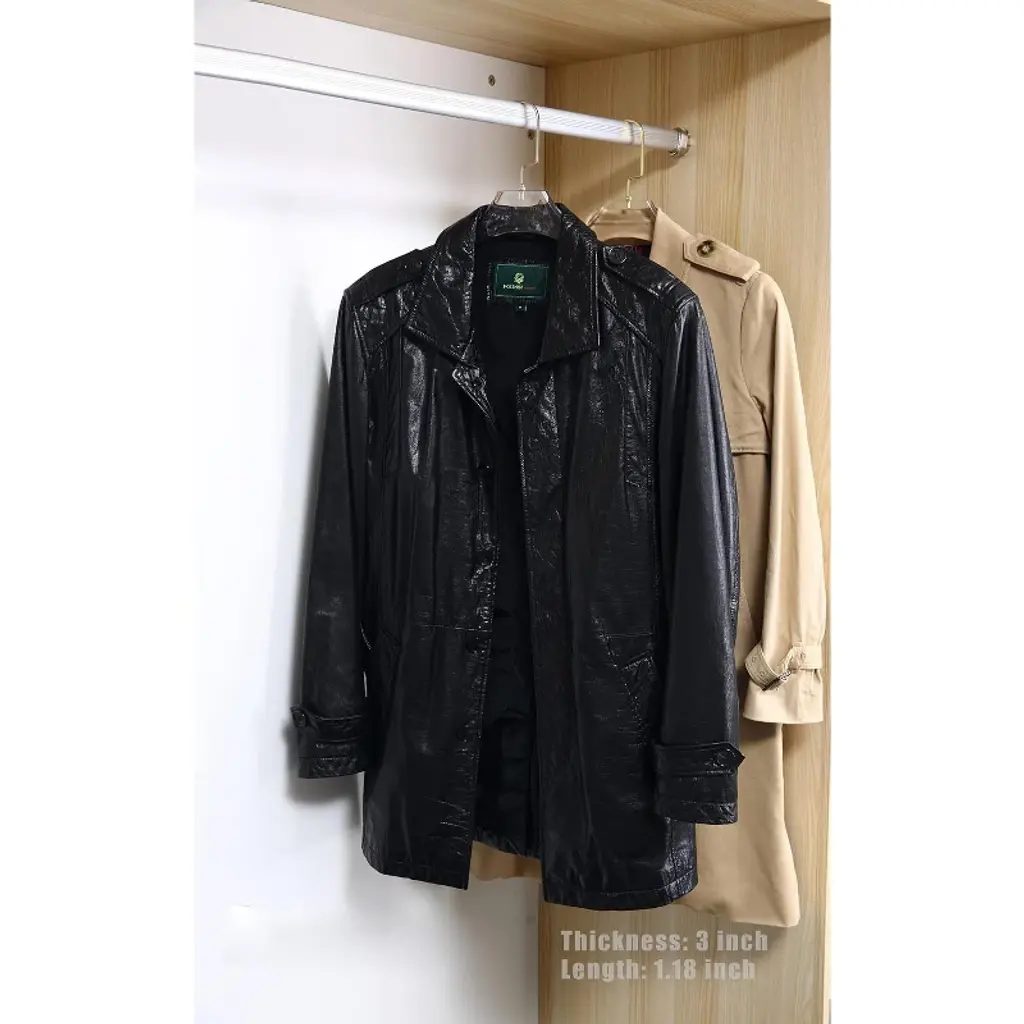 "SLEEK & MODERN - Our Acrylic Hangers are an essential for every closet. They're made of crystal-clear acrylic for a luxurious look and feel. HANGER SHAPE - Flat body can hold all shapes and styles of coats, skirts, trousers and dresses to keep your clothing in their perfect shape. DESIGNED FOR WARDROBE AND CLOSETS - These are the best organization accessories to make your closet look better and tidy. The thick clear acrylic construction and unique design ensures static hold of your clothes. PACKAGE INCLUDES - Set of 6, 12, or 32 Acrylic/Lucite hangers. PERFECT STANDARD DIMENSIONS - Men's hanger measures 17.3 in. Length, Kid's hanger measures 14 in. Length, Baby's hanger measures 12 in. Length."