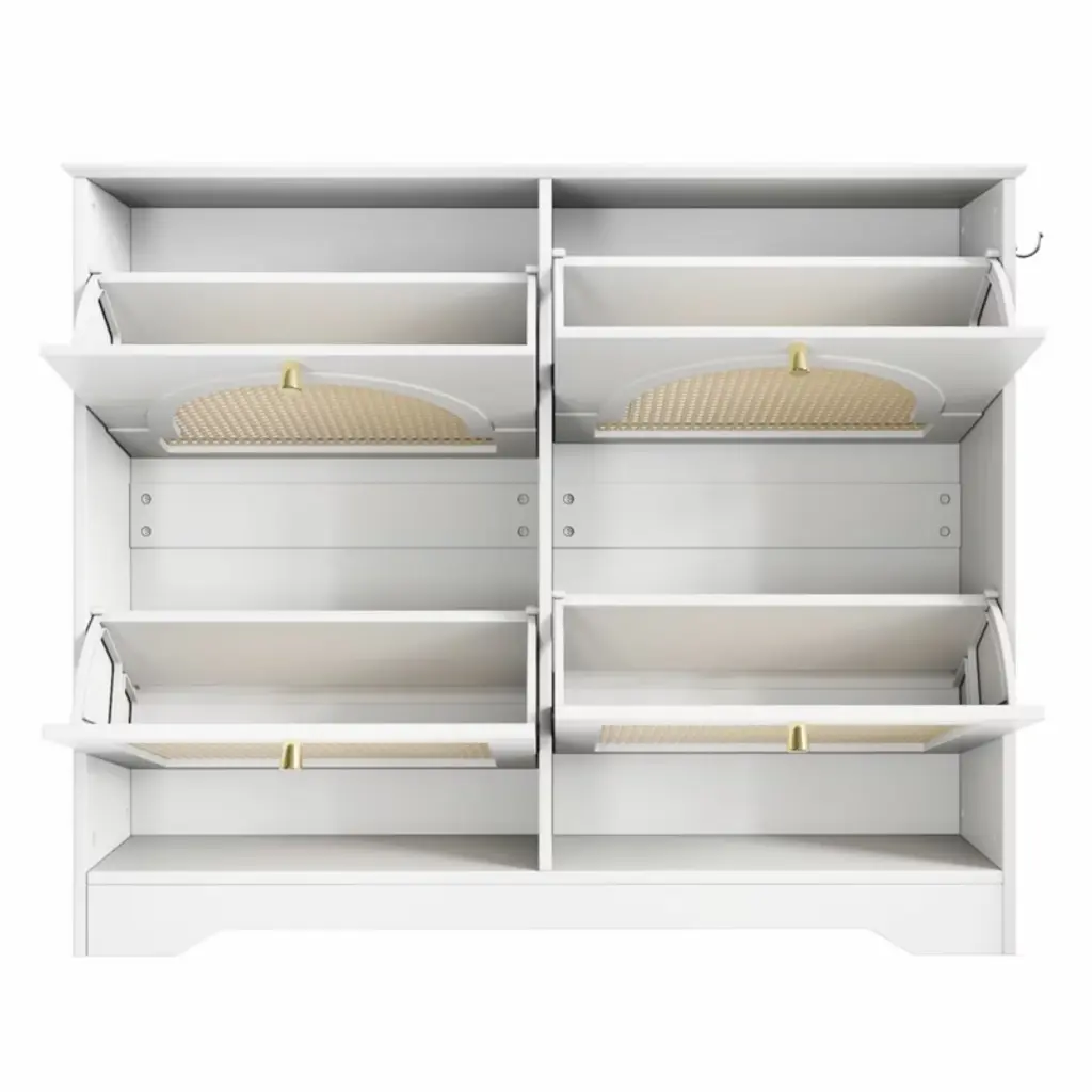 Yoocozz Tipping Bucket Shoe Cabinet With 4 Flip Drawers And 2 Silvery Hooks For Hallway,entryway Shoe Organizer With 4 Rattan Doors-white