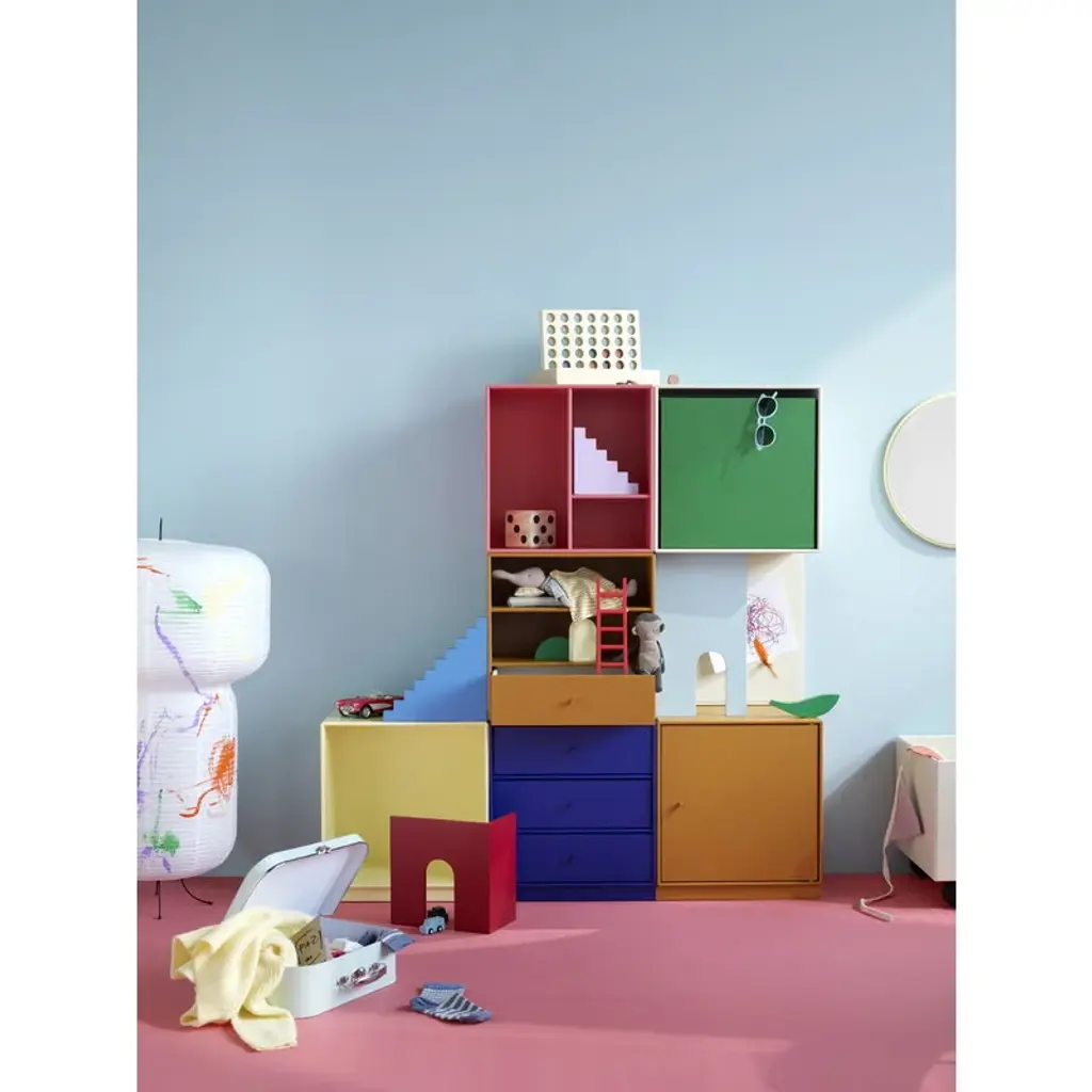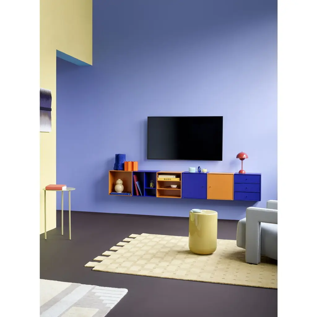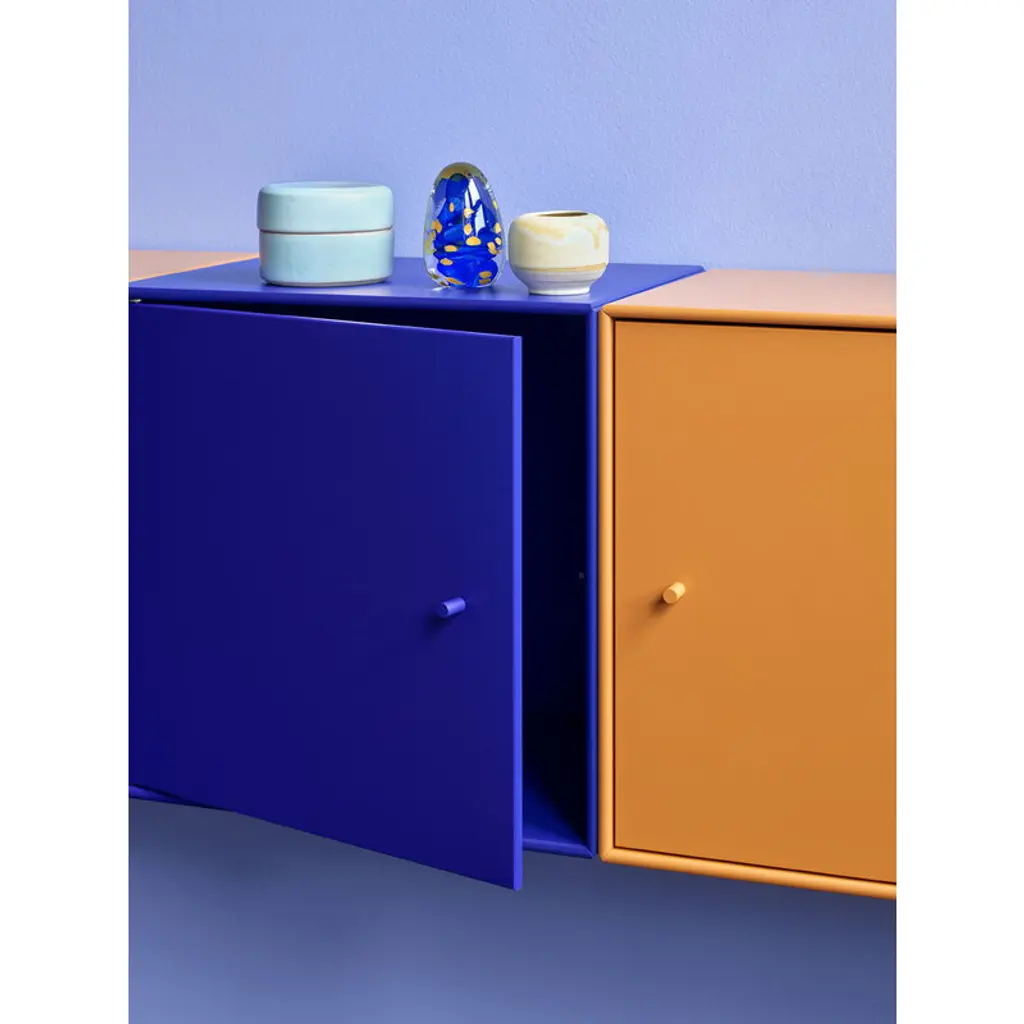 The Montana Mini module with door is a simple yet extremely multifunctional storage module that can be mounted on the wall or placed on the floor, either individually or in groups. The module is mounted on the wall by hanging it on the included suspension rail with small spacers – this way, you can easily rearrange the modules without any tools and adjust them by rotating the spacers. All corners of the module have pre-drilled holes, allowing you to mount it any way you like. Included are also anti-slip patches for stacking the modules on top of each other. Made of thin, 0.31 in (8 mm) MDF, the Montana Mini modules are perfect for displaying books, glassware or your favorite objects. The Montana products were created by Peter J. Lassen, and all the items have been designed and manufactured in Denmark.