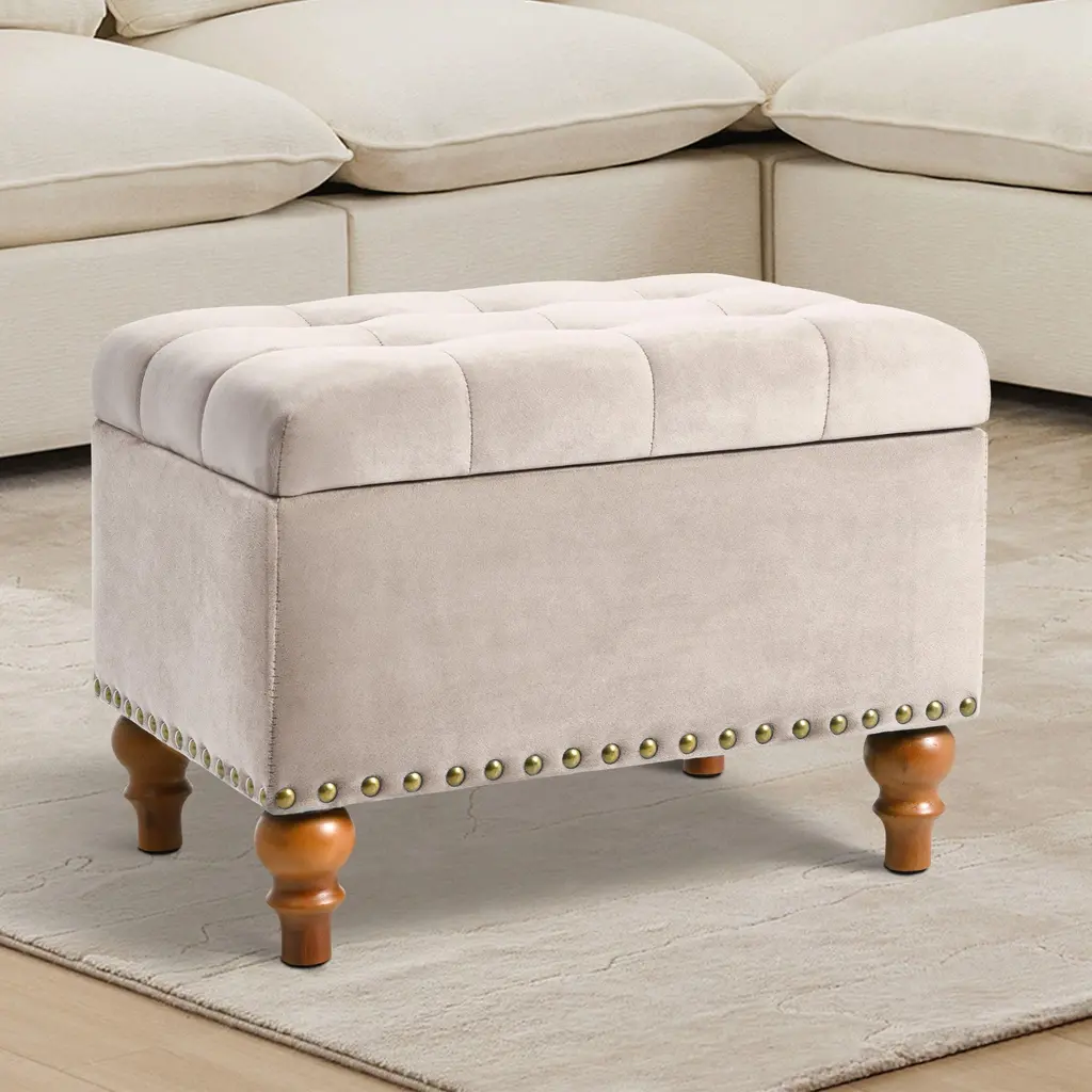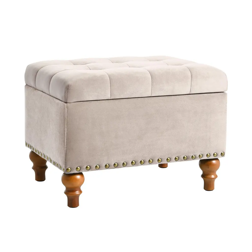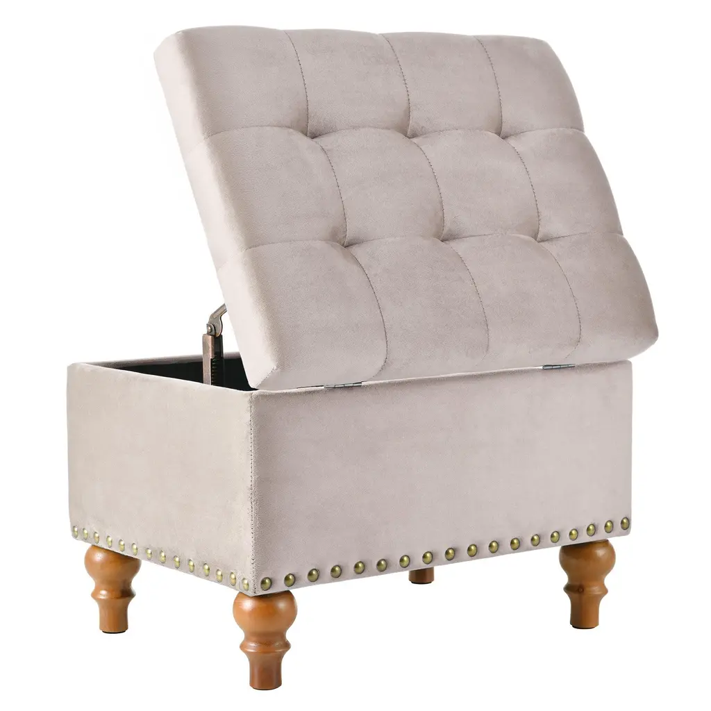 The elegant, retro-style riveted design is the embodiment of the fashion concept, giving your home a sophisticated design that matches perfectly with any space. It can be used as a shoe change stool, storage stool, coffee table and extra stool in the living room.【High Quality Fabric】 :High quality linen fabric with Ottoman design, skin friendly, breathable, and filled with high density sponges make this Ottoman sit very comfortable.【Convenient Hinge Design】 :With the help of this convenient hinge, you can open and close the Ottoman's lid very easily. Top easily lifts to reveal a storage compartment, and comes with a child safety hinge to prevent lid slamming.【Comfortable and Durable】 :Cream velvet fabric with storage ottoman design, filled with high density sponge makes this ottoman sit very comfortable. With a sturdy solid wood frame, durable wood legs and durable hinges, the padded top can stay open when you open it completely. You don't have to worry about it closing. Designed for long lasting use. Withstand 300 pounds of weight.【Extra Hidden Storage Space】 : Ottoman seats provide extra storage space to neatly organize toys, pillows, or magazines. Secret compartments protect your privacy and keep your household items organized and clean. At night, it can provide a comfortable rest for your tired feet and can provide an extra stool for your friends.【Easy To Install】 :Easy to install, without any tools, just screw on 4 legs, you can add an exquisite ottoman to your living room or bedroom.